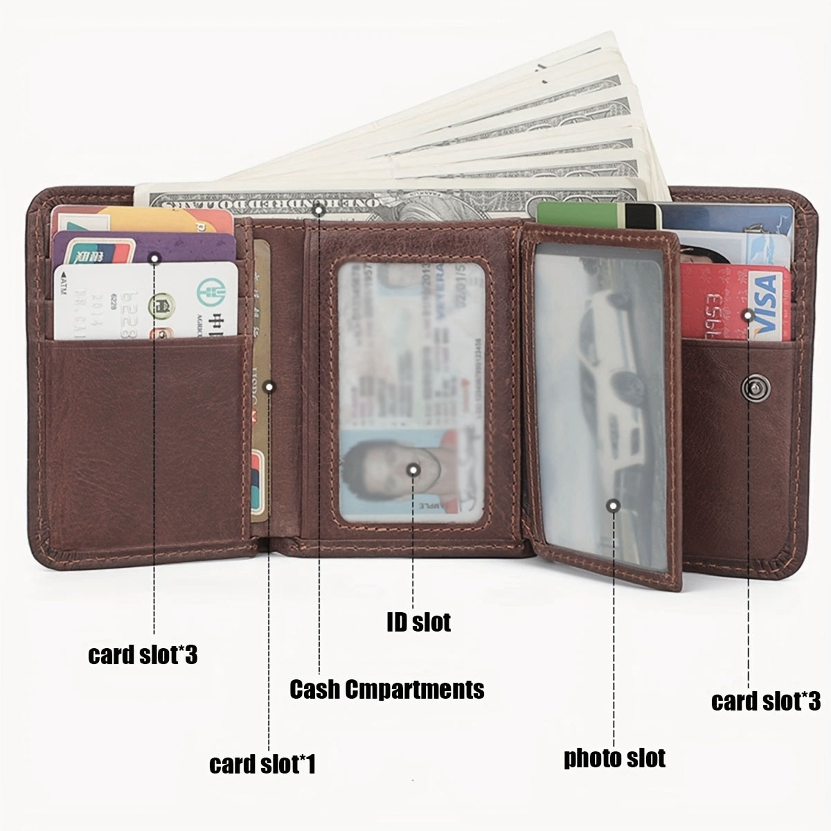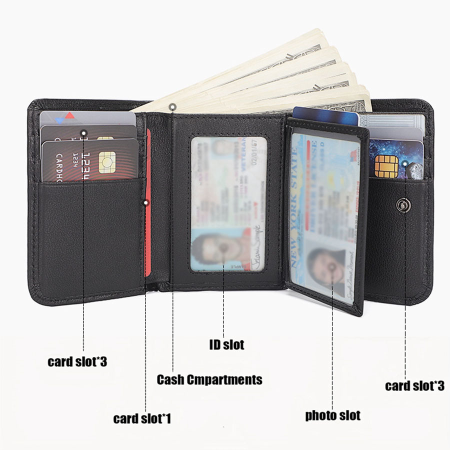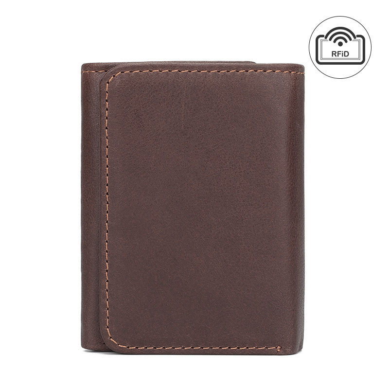 첫 번째 레이어 소 가죽 남성 가죽 지갑 신용 카드 홀더 3 배 유럽과 미국의 RFID 도난 방지 브러시 짧은 지갑 뷰티 클립스토어 가기