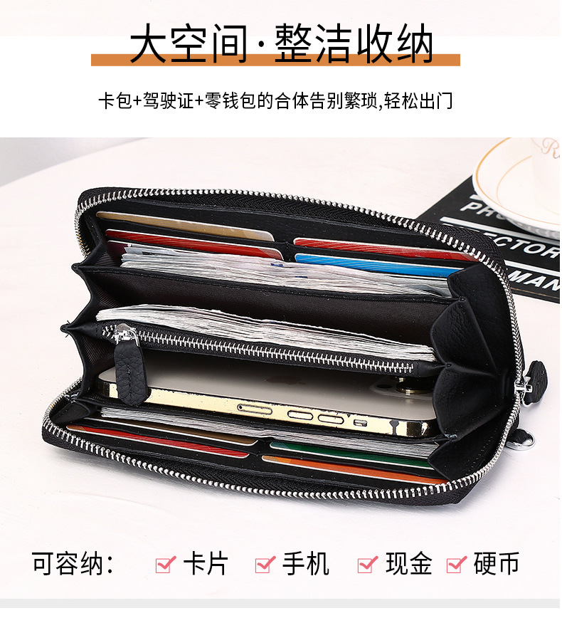 정품 가죽 남성과 여성의 긴 지갑 카드 홀더 통합 2023 새로운 긴 멀티 카드 대용량 핸드 헬드 지갑스토어 가기