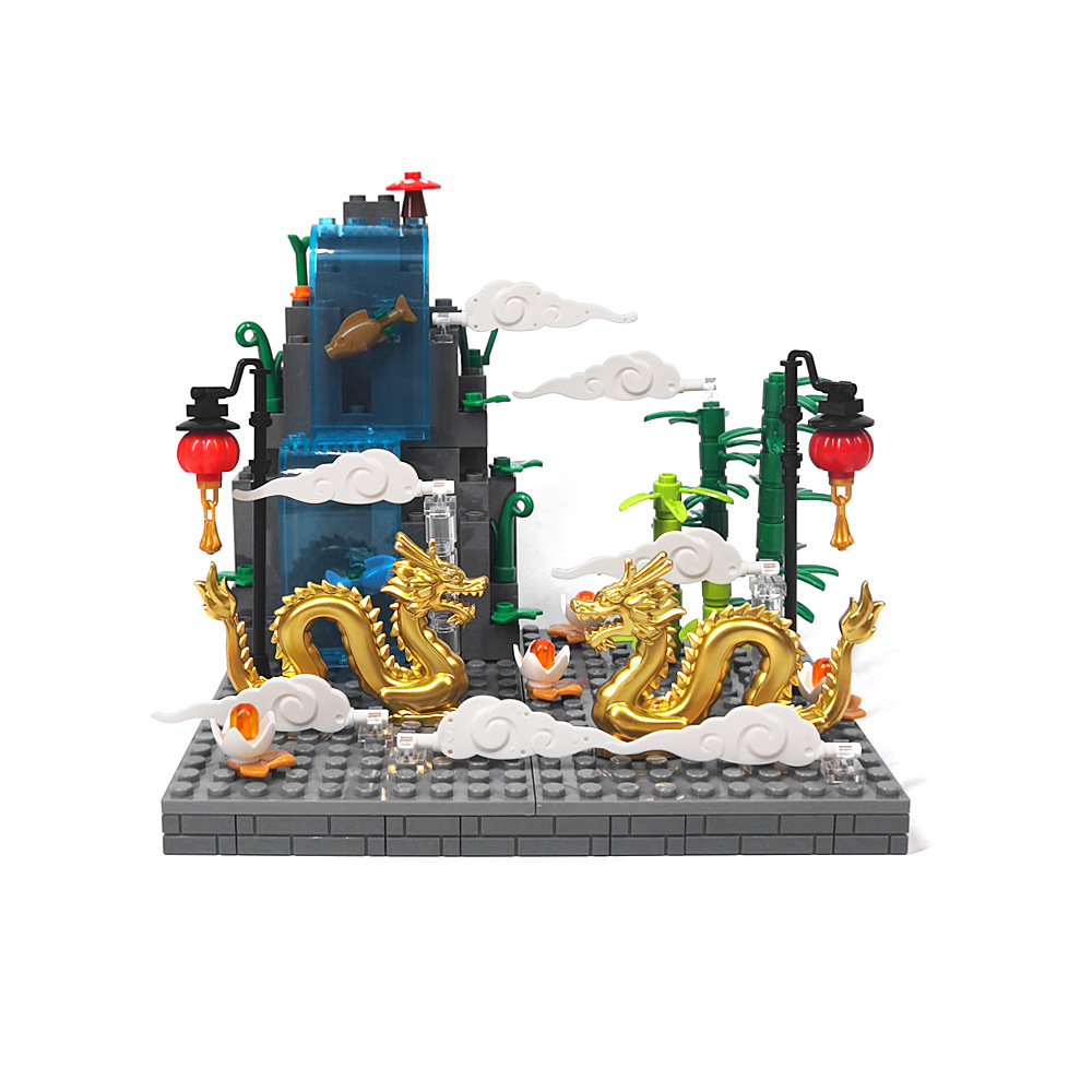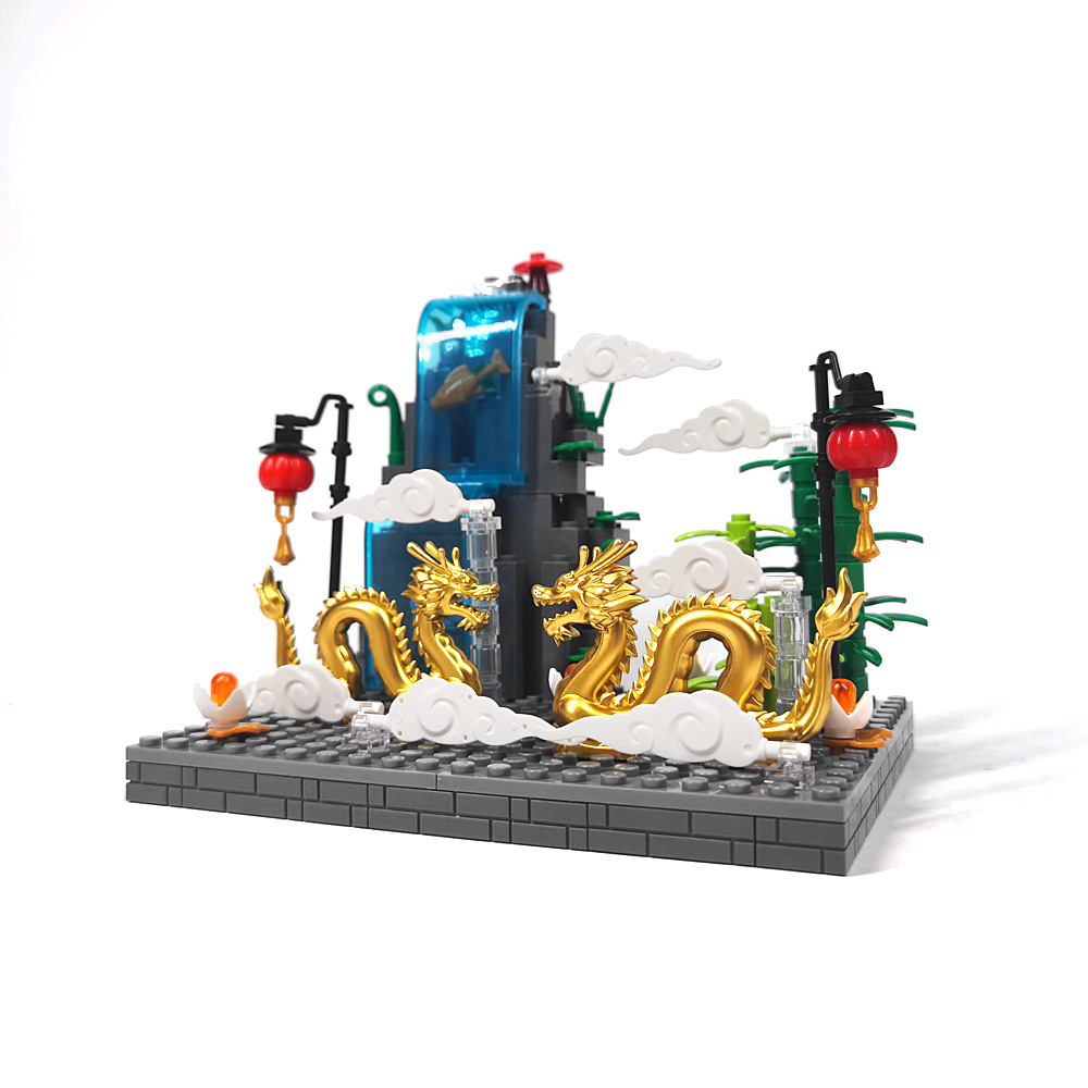 Velos DIY 중국 스타일 새해 길조 구름 골든 드래곤 접합 MOC 랜턴 작은 입자 장식 장면 선물 장난감