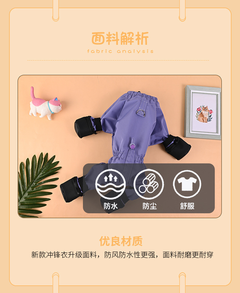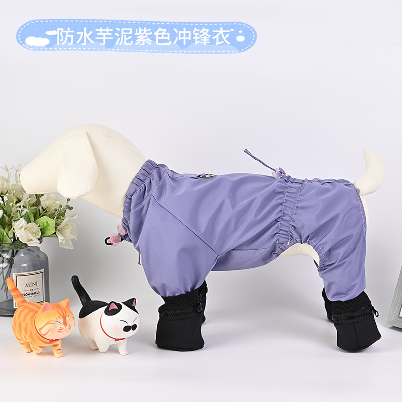 애완 동물 고양이와 개 올 인 클루 시브 네 다리 원피스 방수 더러운 발 견인 개 보행 의류 중소 개 안티 린트 재킷