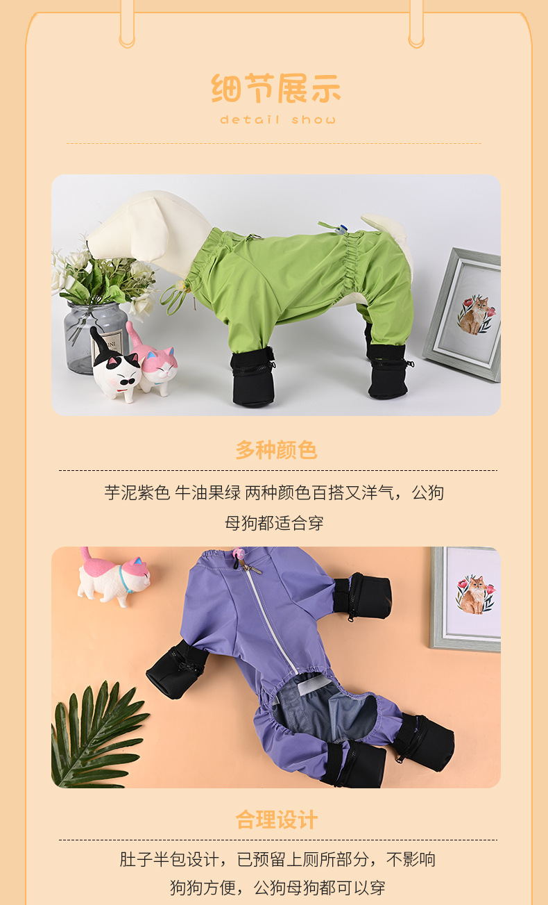 애완 동물 고양이와 개 올 인 클루 시브 네 다리 원피스 방수 더러운 발 견인 개 보행 의류 중소 개 안티 린트 재킷스토어 가기