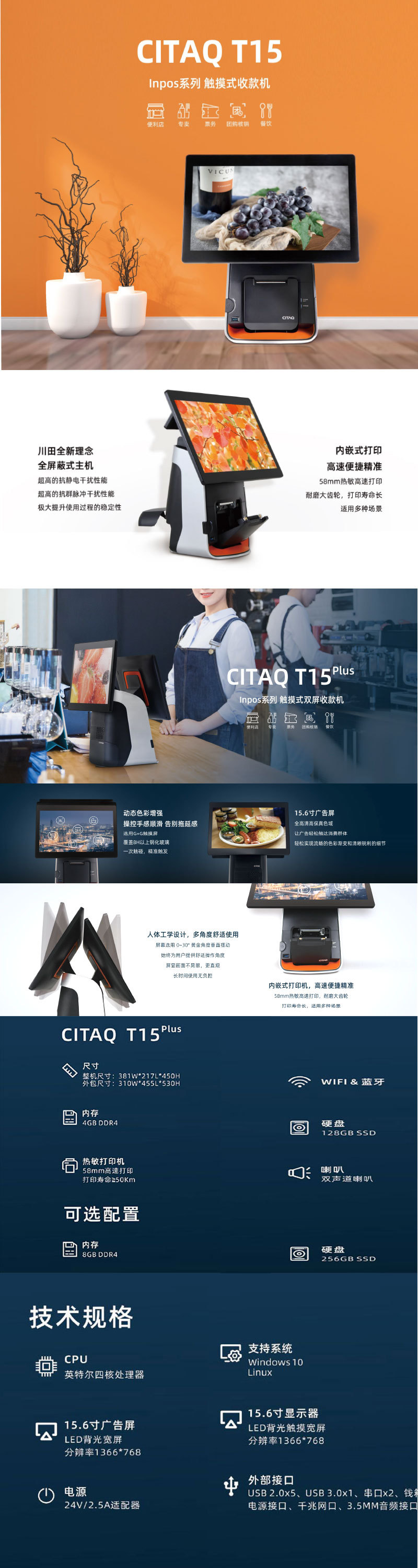 금전 등록기 카와다 T15 터치 더블 스크린 올인원 머신 쇼핑몰 슈퍼마켓 베이커리 레스토랑 테이크 아웃 라인 싱글 머신