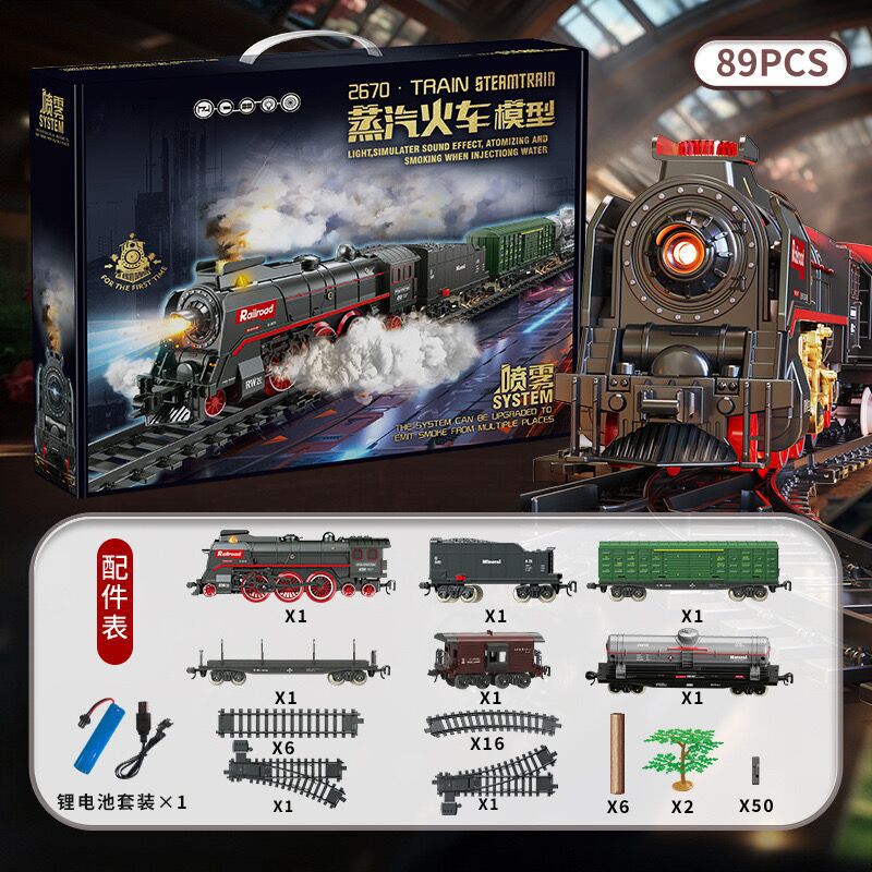 • [89pcs] 623B 복고풍 증기 기차 선물 세트-리튬 배터리 판