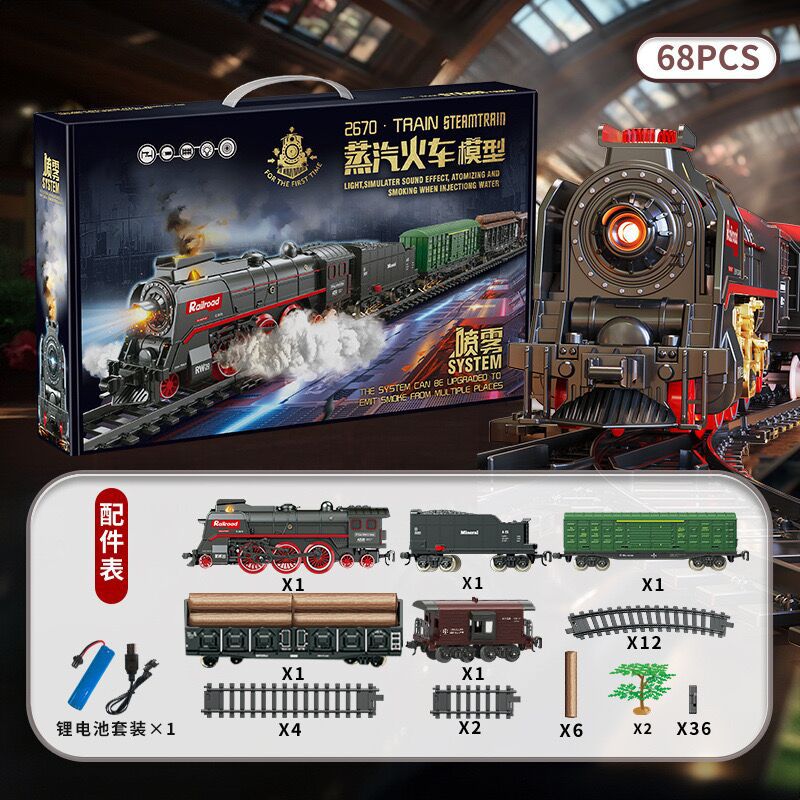 • [68pcs] 622B 복고풍 증기 기차 선물 세트-리튬 배터리 판