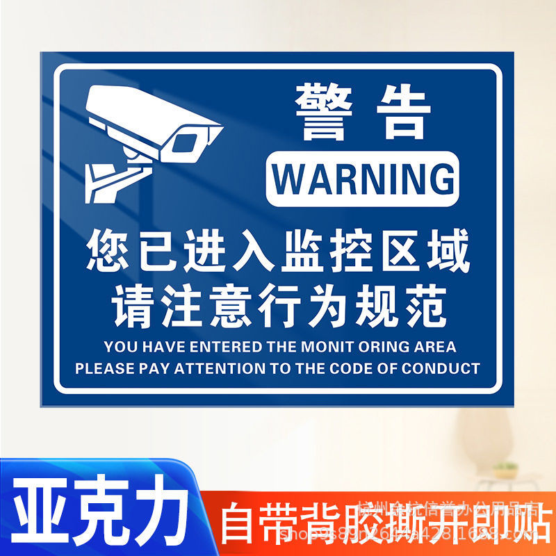 내부에 모니터링 경고 표시가 있습니다. 모니터링 영역 경고 표지판은 모니터링 영역에 들어갔음을 나타냅니다.스토어 가기