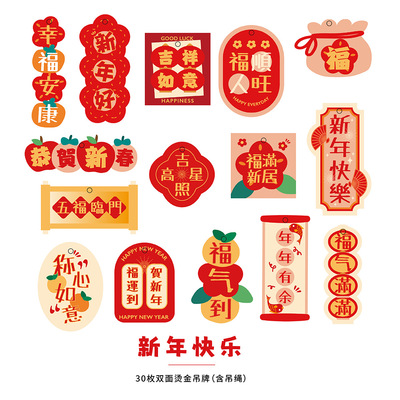 • 새해 복 많이 받으세요 믹스 매치 행택 30개입 * 나무 소재