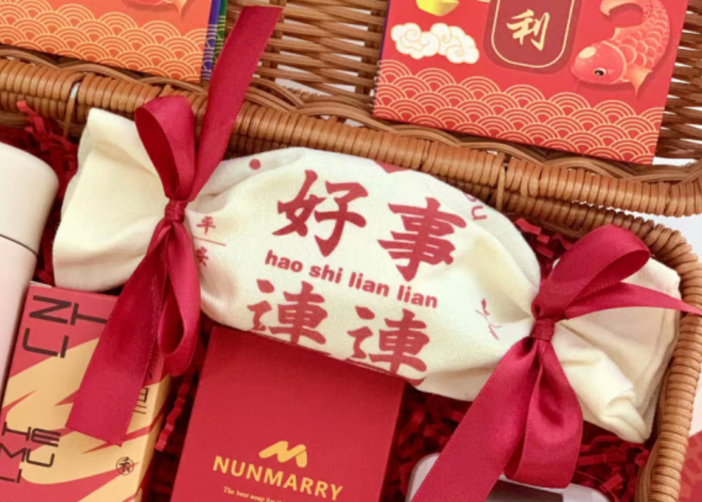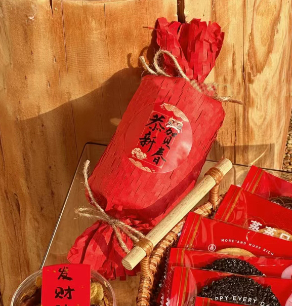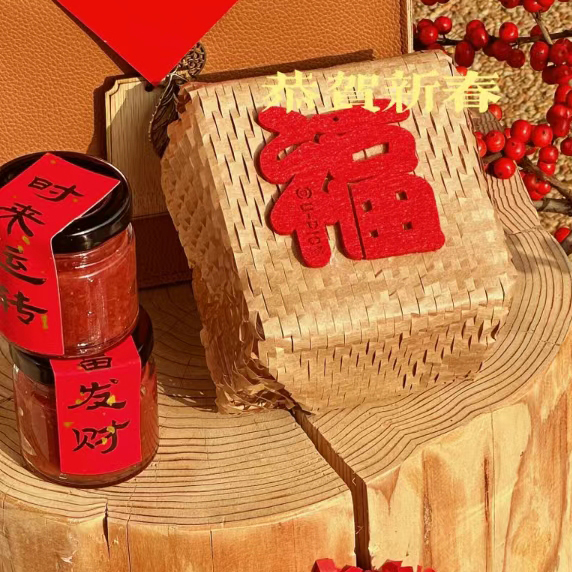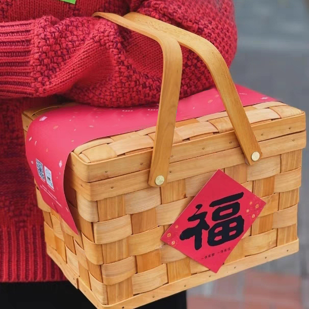 • "더블 손잡이 빈 나무 조각으로 짠 바구니 + ""Fu""라는 단어가 적힌 스티커 + 랜덤 빨간색 새해 봉인 27*19*17.5cm* 나무 소재"