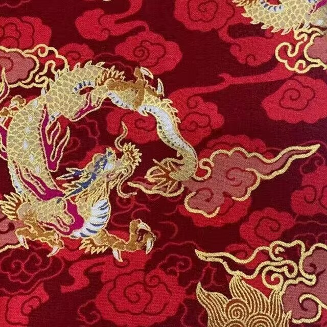 • 빨간색 금박 용문 무늬 원단 70*70cm 1장 * 목재 재료