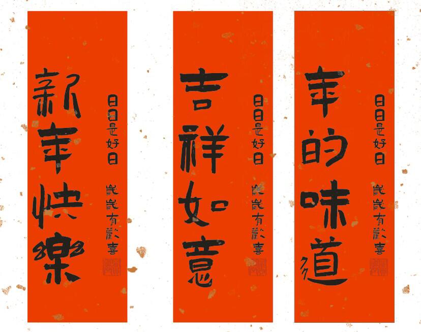 • 믹스 앤 매치 라운드 4cm 캘리그래피 용의 해 레드 스프링클 골드 스티커─9개입 나무 재질 스티커