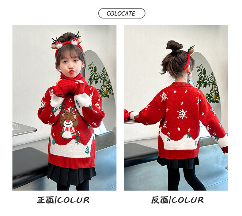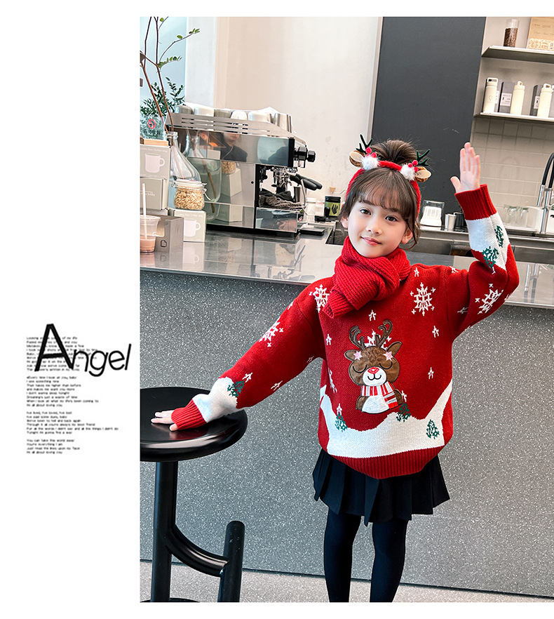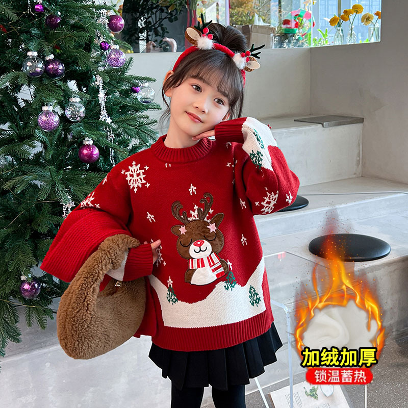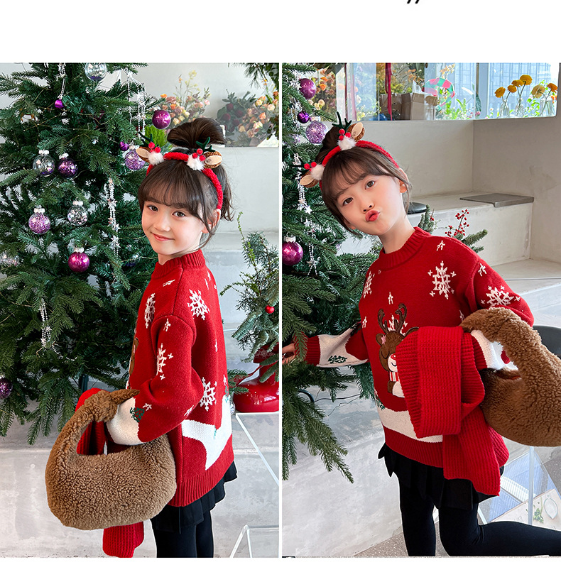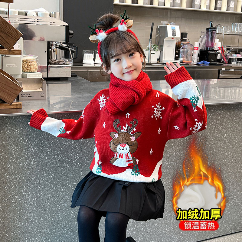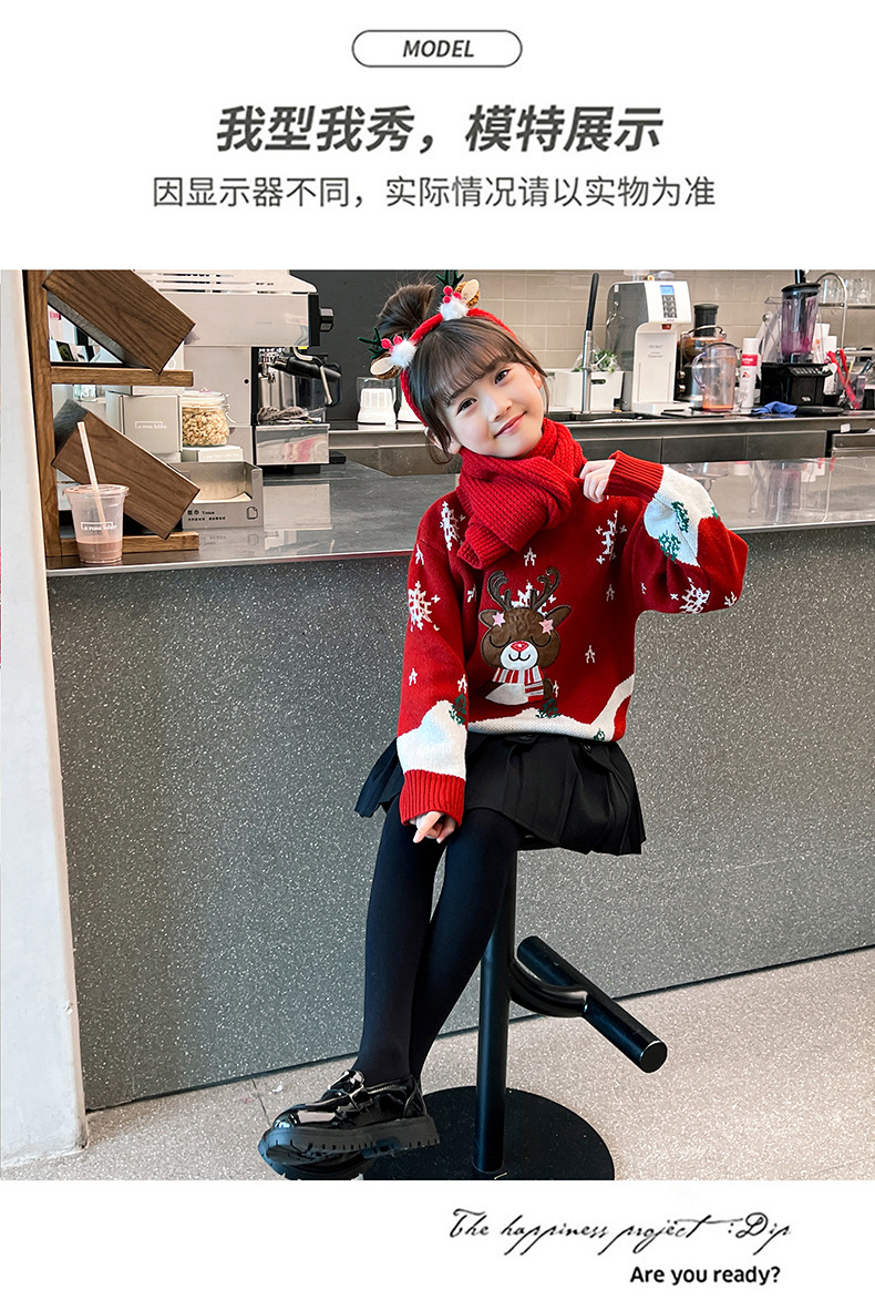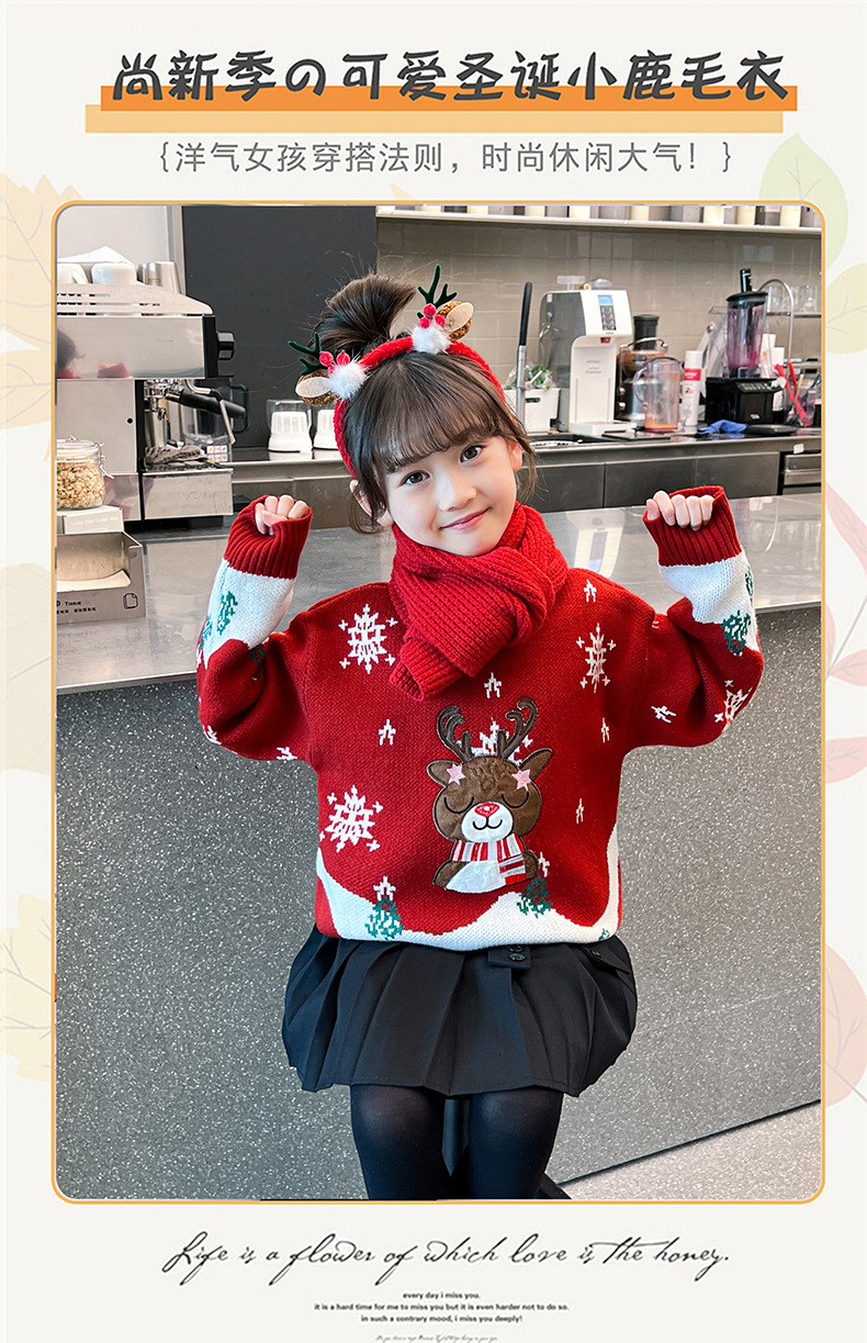 2024 새로운 겨울 만화 크리스마스 사슴 캐주얼 소녀 스웨터 서양식 풀오버 중대형 어린이 스웨터 탑스토어 가기