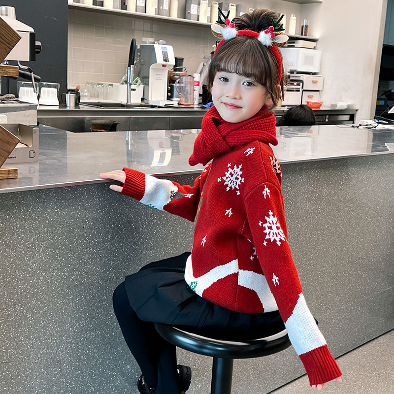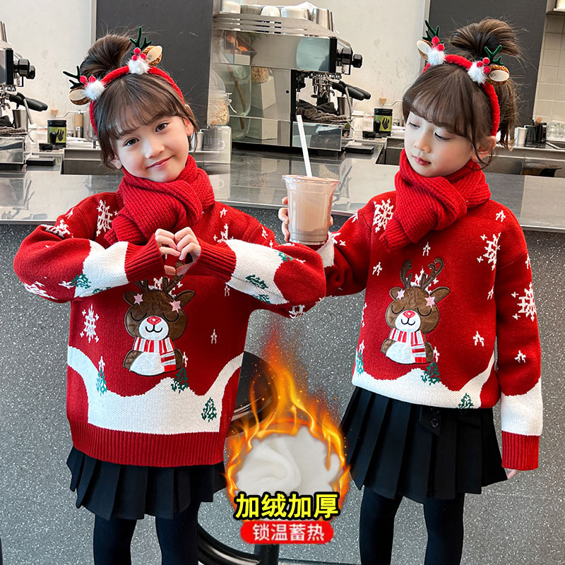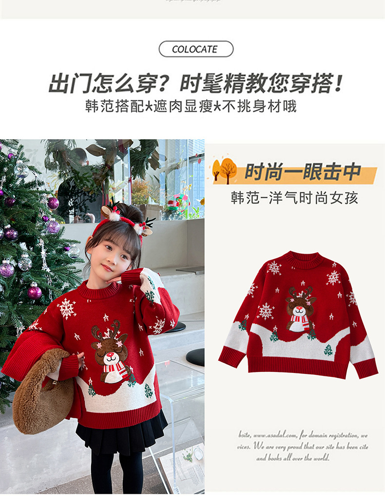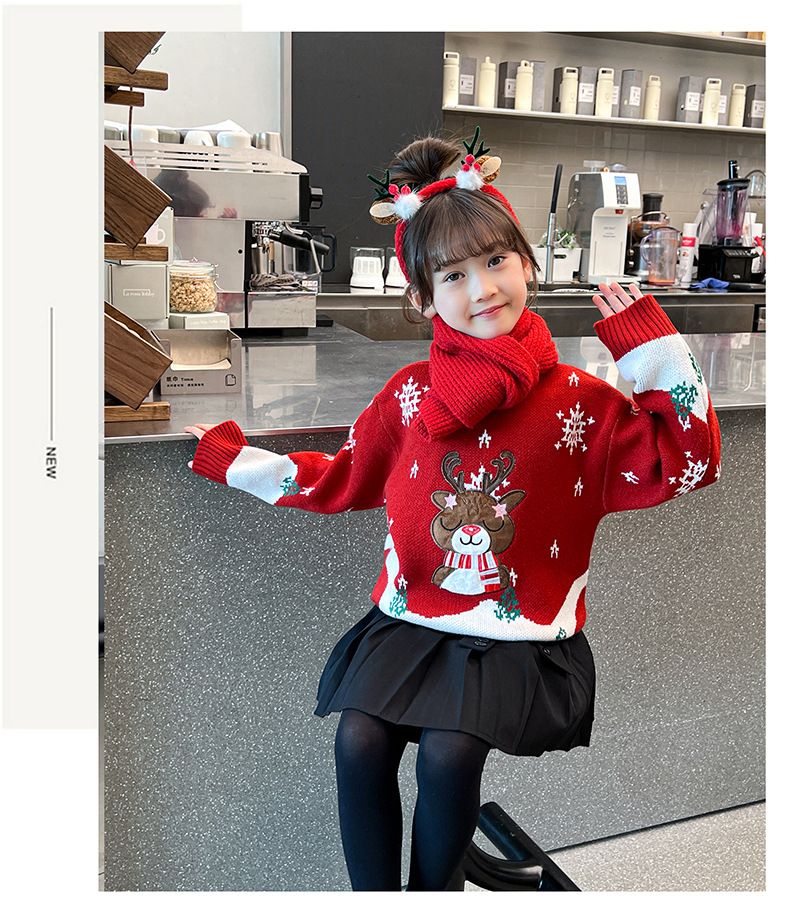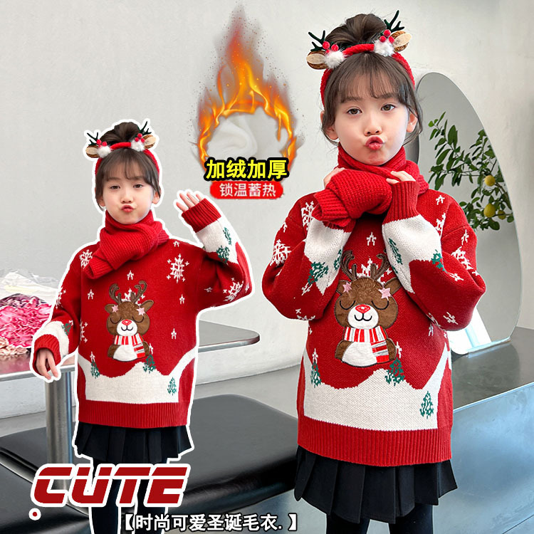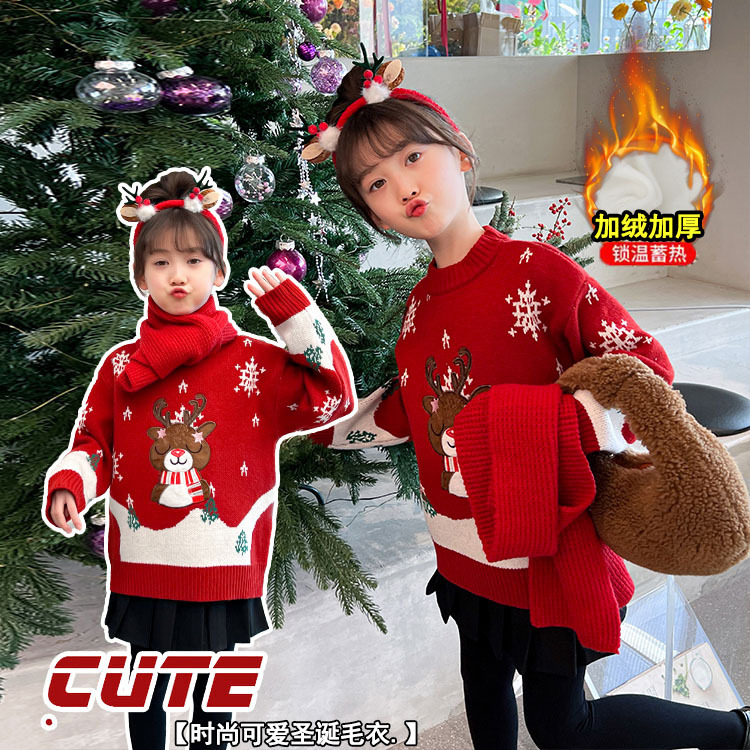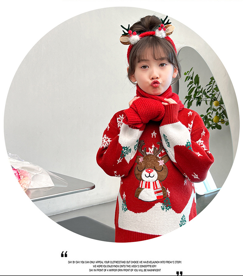 2024 새로운 겨울 만화 크리스마스 사슴 캐주얼 소녀 스웨터 서양식 풀오버 중대형 어린이 스웨터 탑스토어 가기
