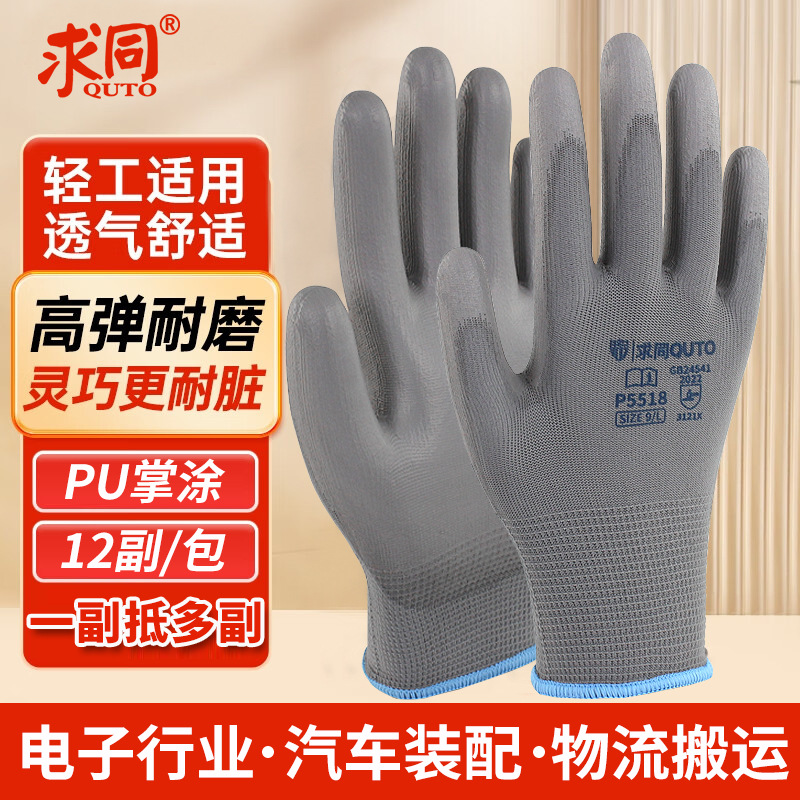 동일한 담그는 노동 보호 장갑 PU 코팅 손바닥 마모 방지 미끄럼 방지 경량 통기성 전자 공장 조립 조명 산업 보호스토어 가기