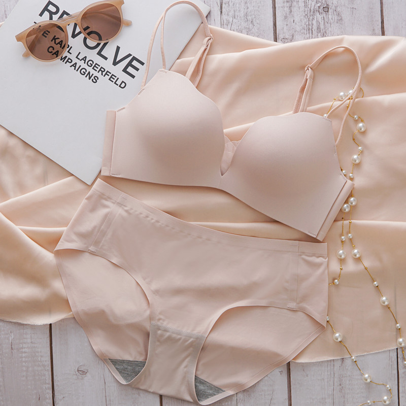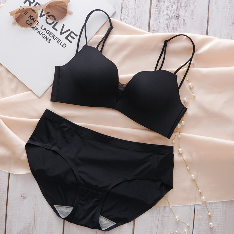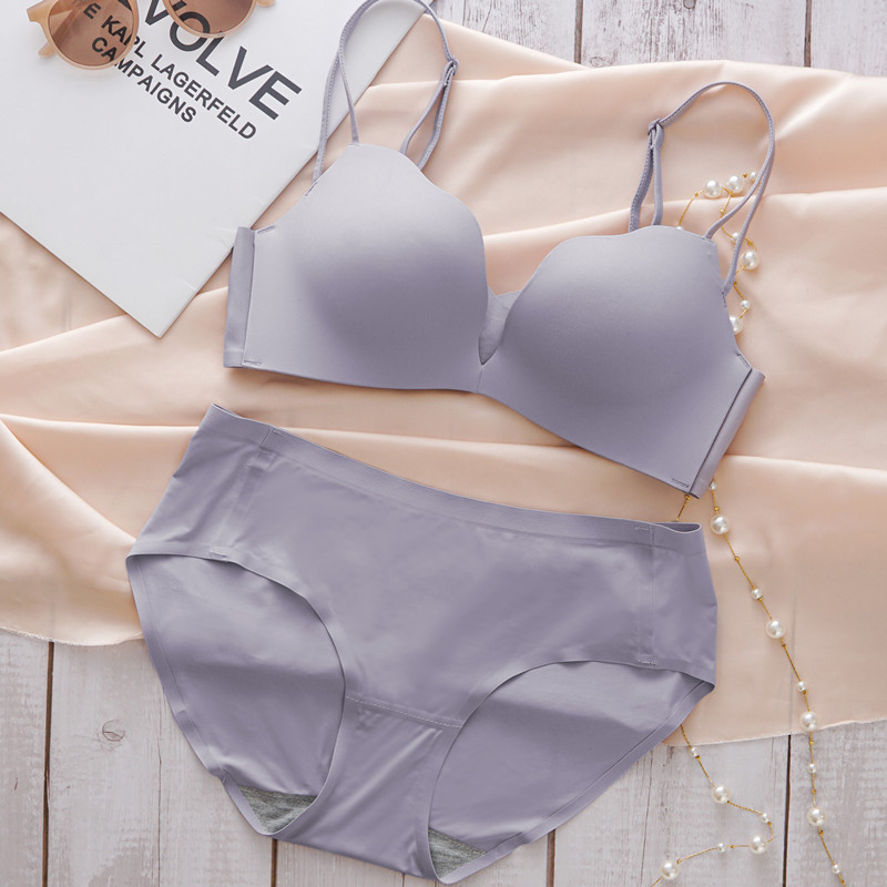 얇은 여름 여름 세트 광택 원활한 속옷 소녀의 작은 가슴이 큰 두꺼운 섹시한 브래지어를 밀어