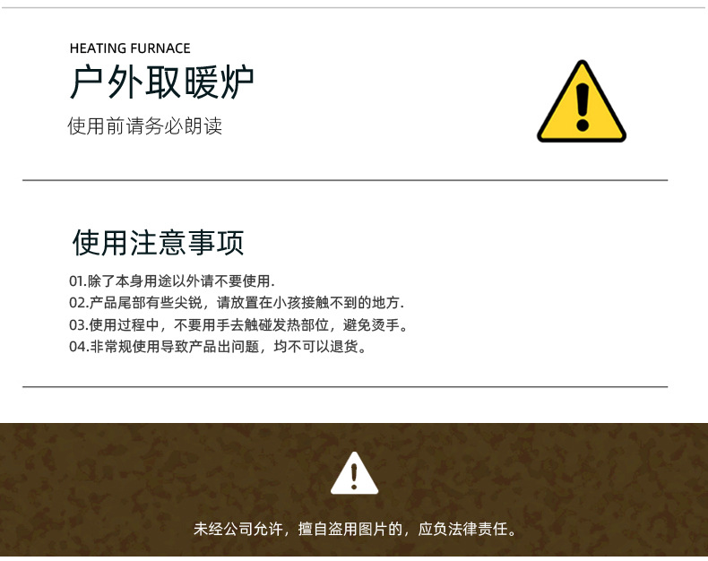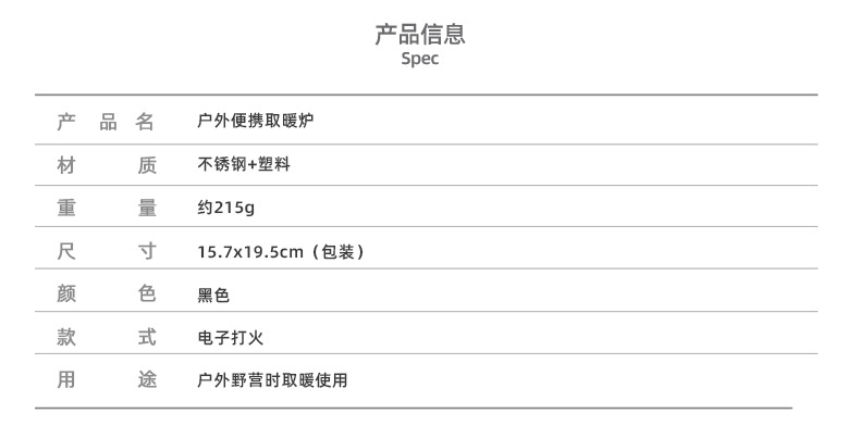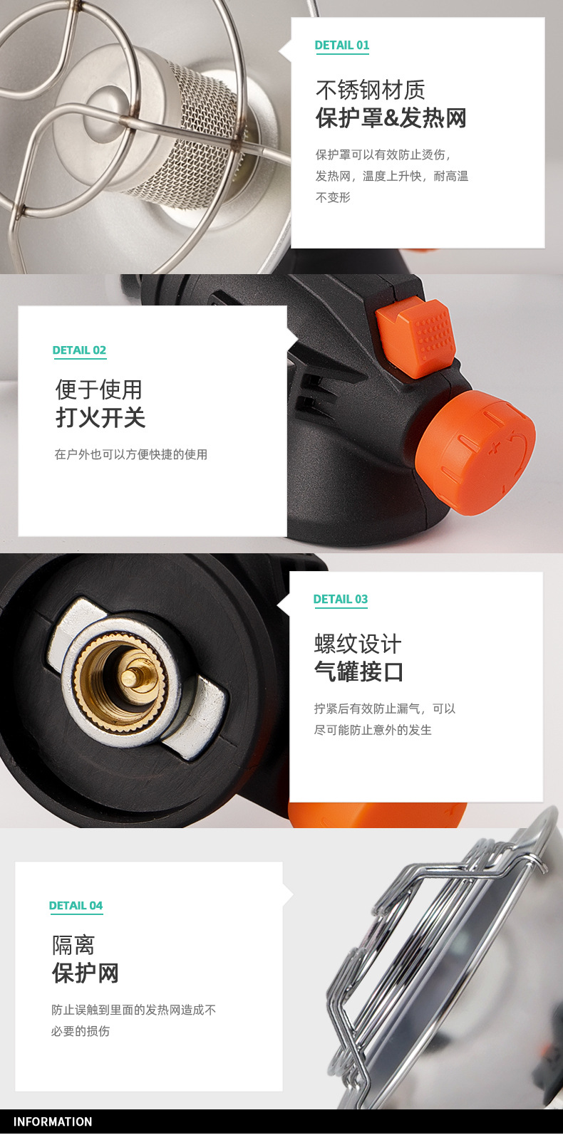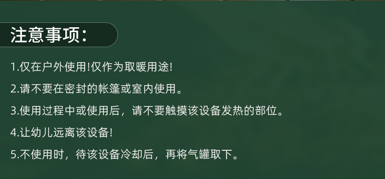 用 途:户外野营时取暖使用 (本品不含气罐)