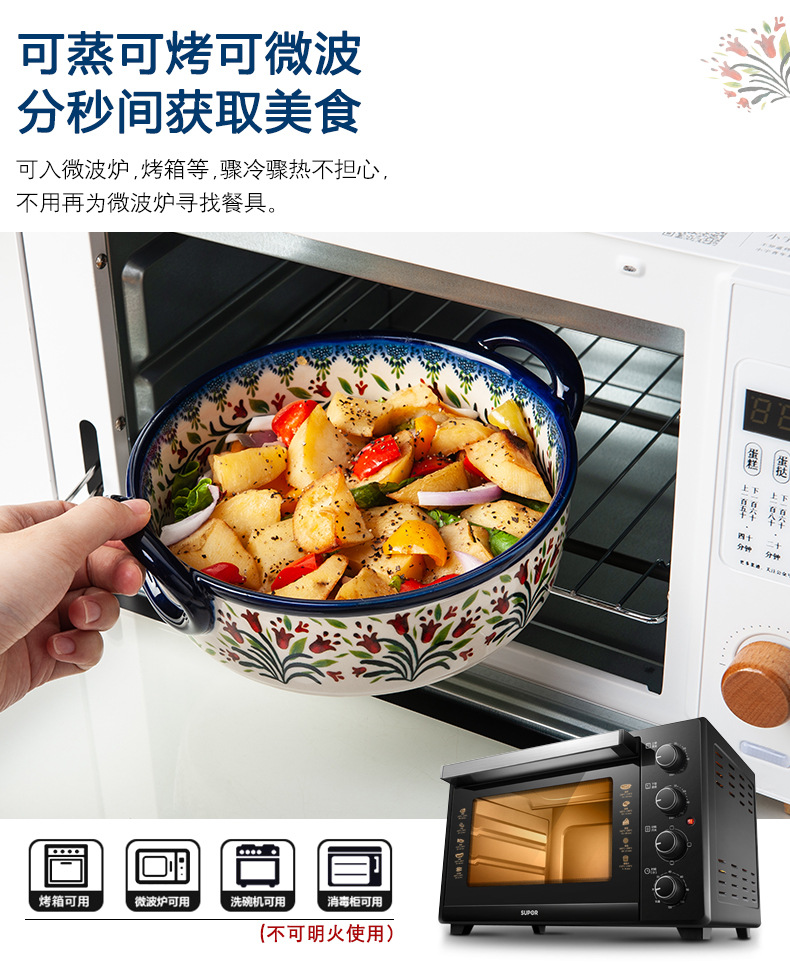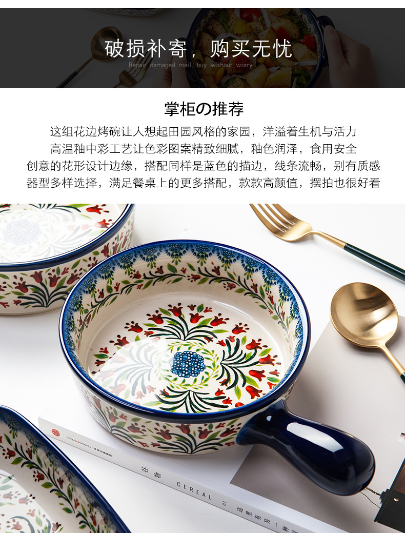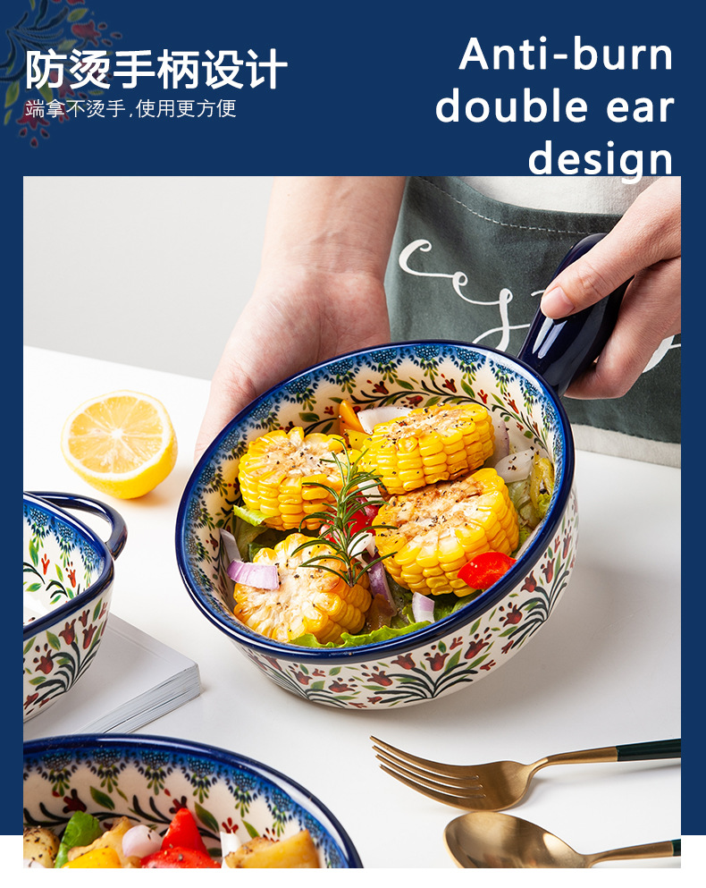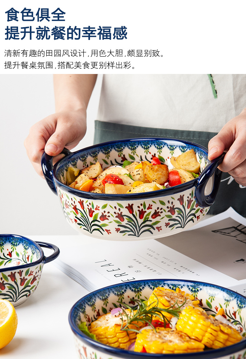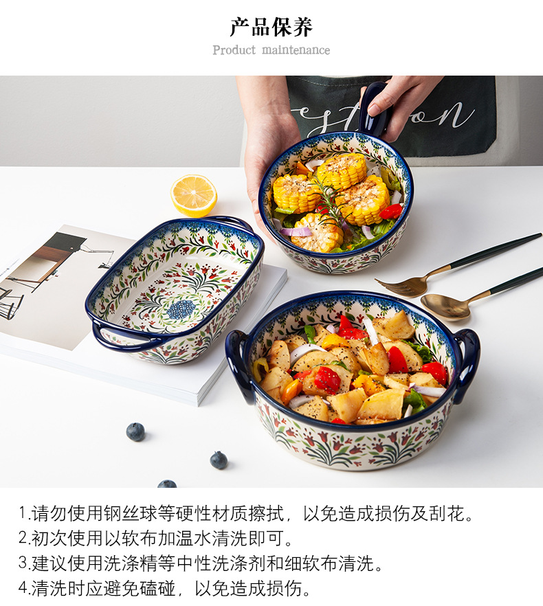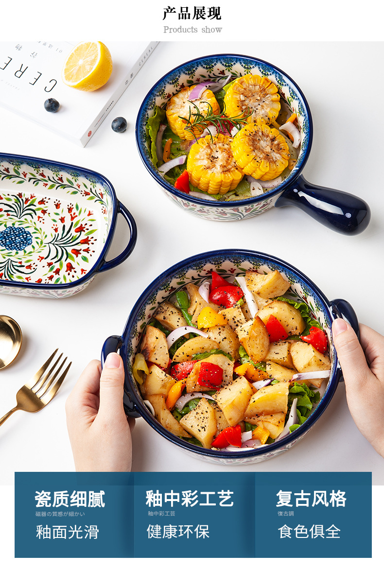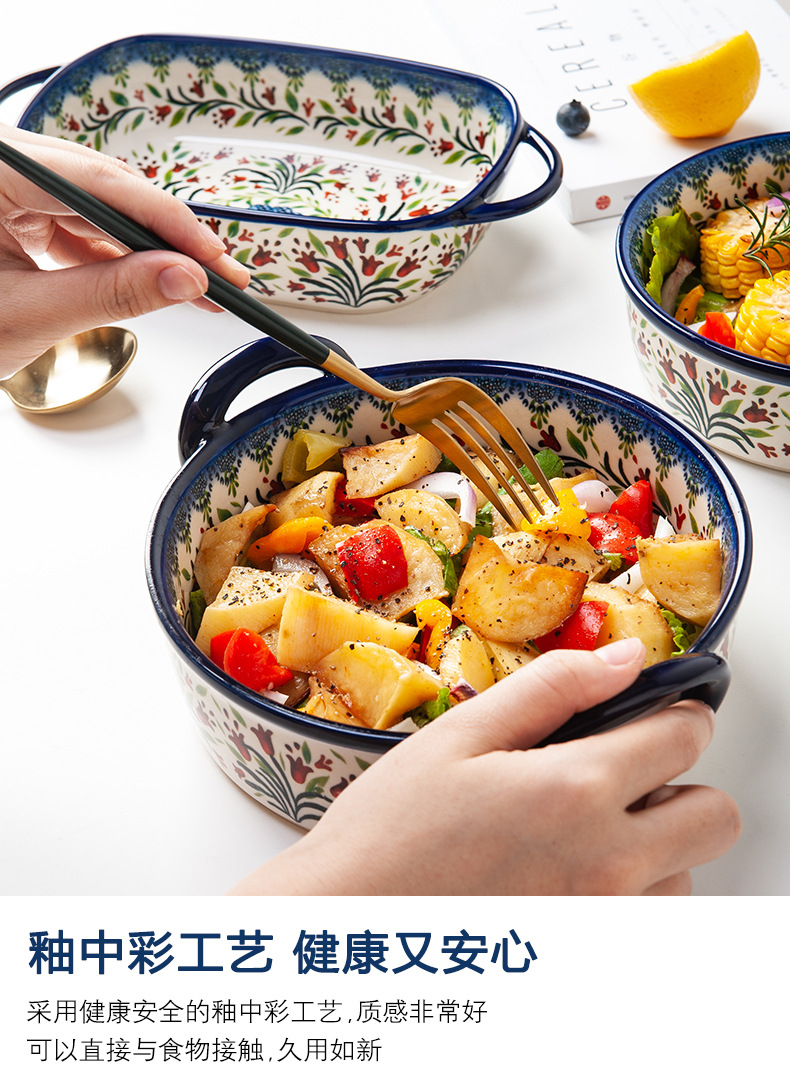 롱 스퀘어 플레이트 과일 그릇 베이킹 볼 더블 귀 그릇 수프 그릇 가정용 세라믹 크리에이티브 레트로 식기 살라 볼 아마존스토어 가기