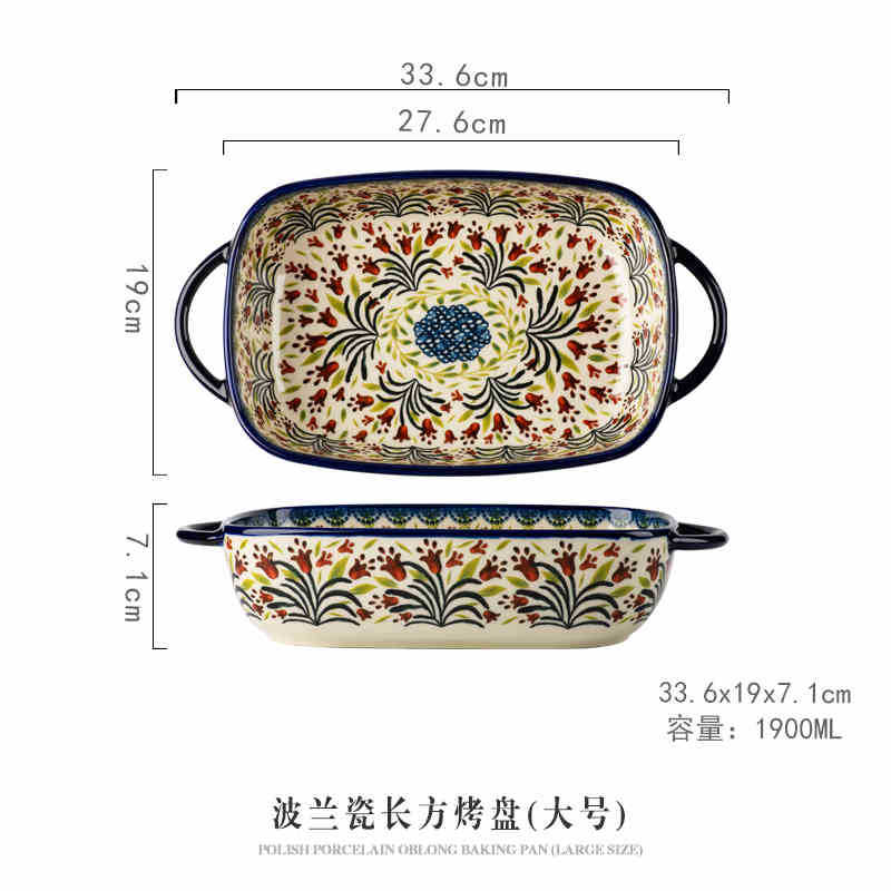 • 폴란드 2 귀 직사각형 베이킹 접시 (대형)