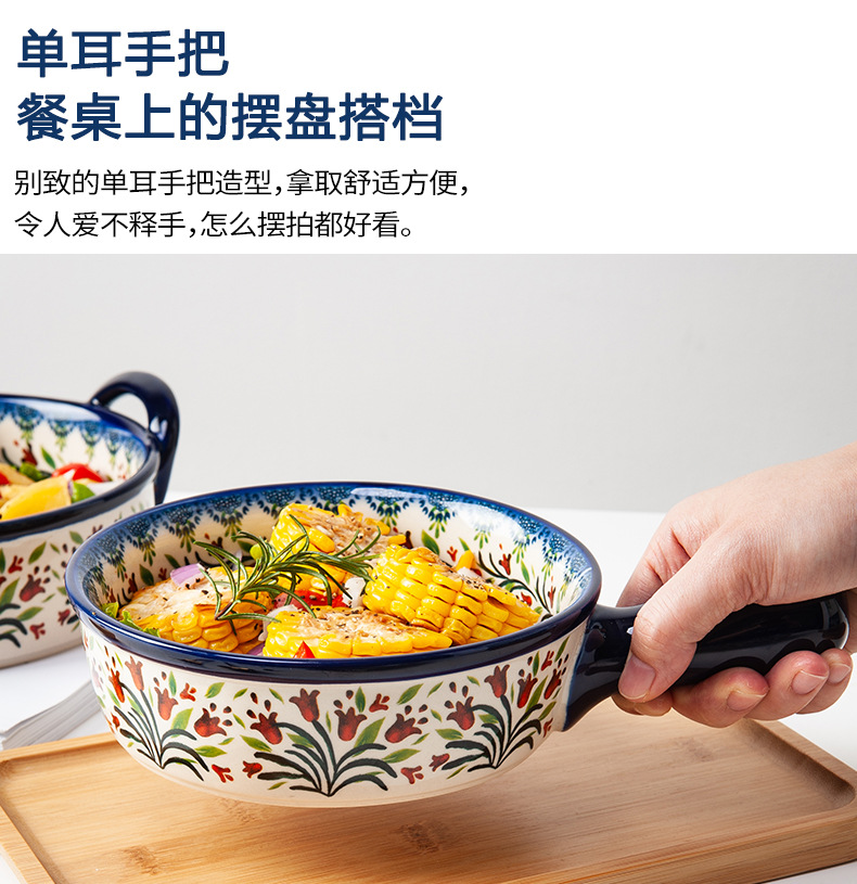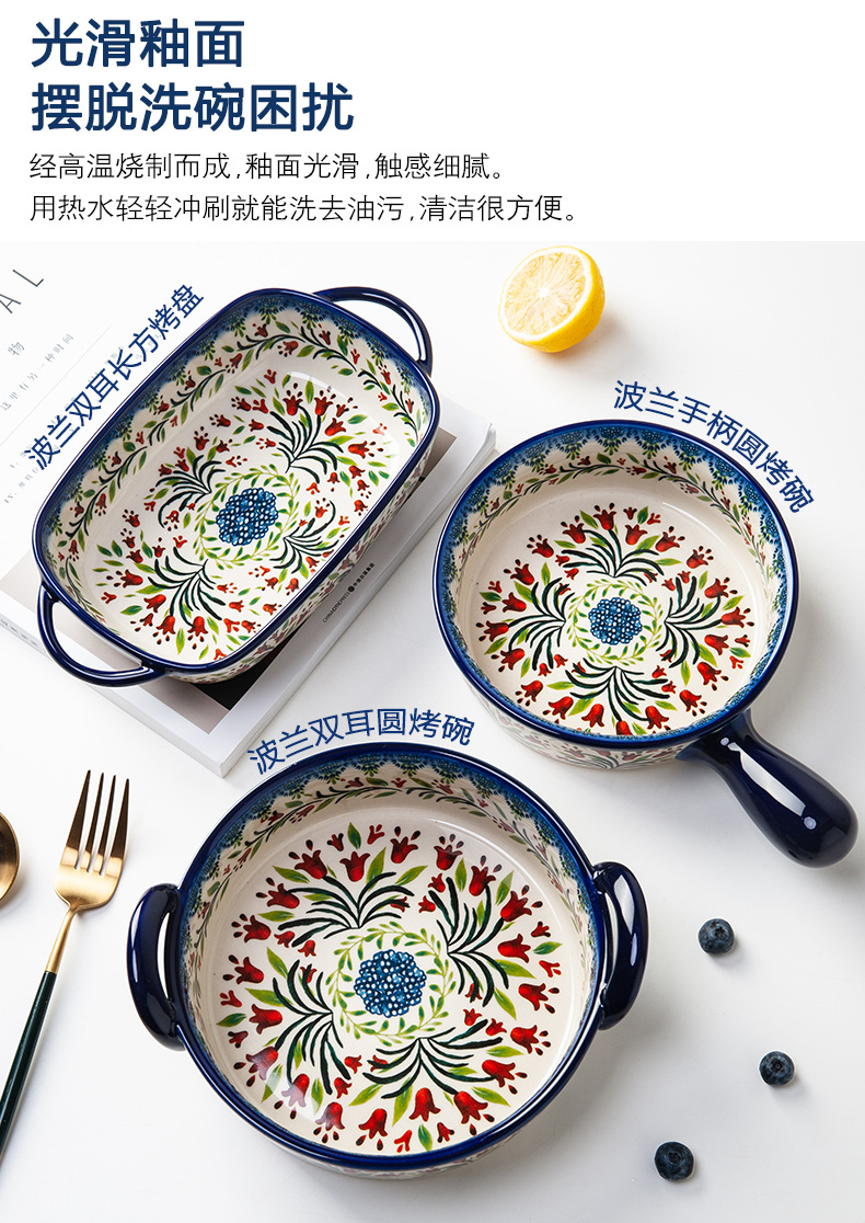 • 폴란드 도자기 손잡이 둥근 베이킹 그릇