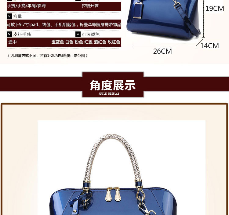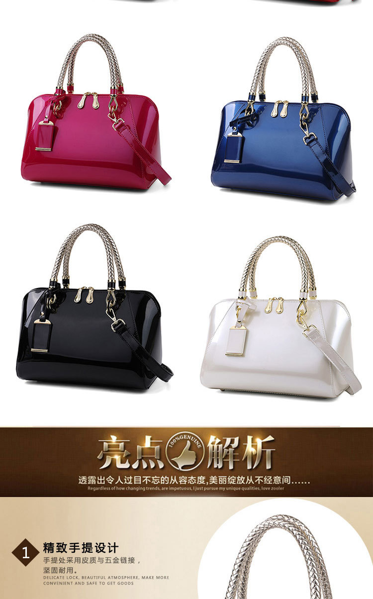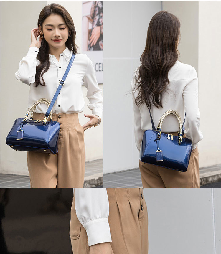 2023 특허 가죽 여성 가방 밝은 손 가방 대외 무역 보스턴 여성 가방 새로운 아마존 패션 어깨 크로스 바디 백