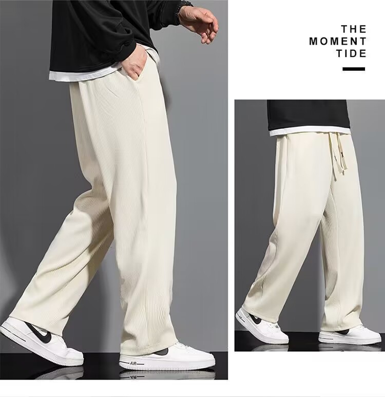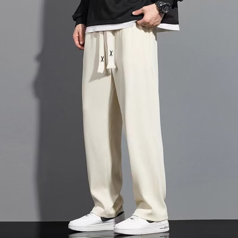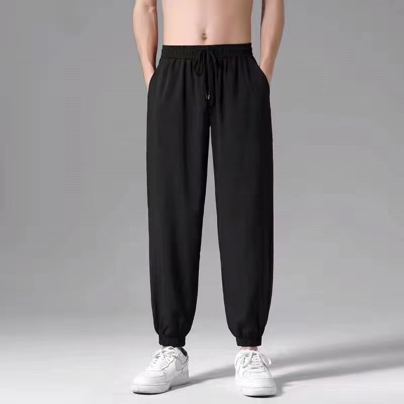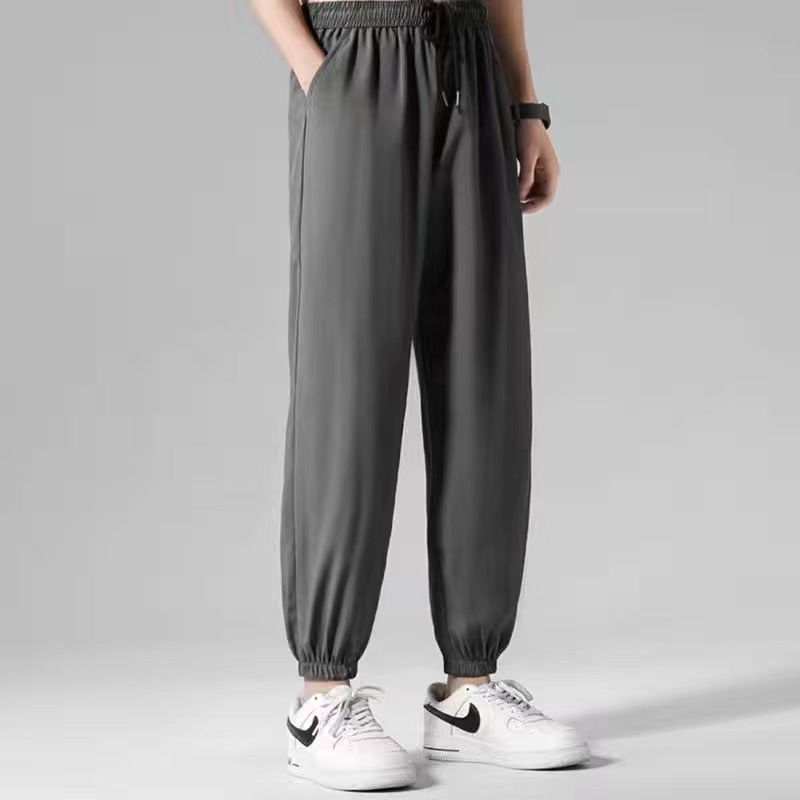 봄과 여름 아이스 실크 바지 남자의 얇은 느슨한 스트레이트 바지 여름 남자의 빠른 건조 캐주얼 바지