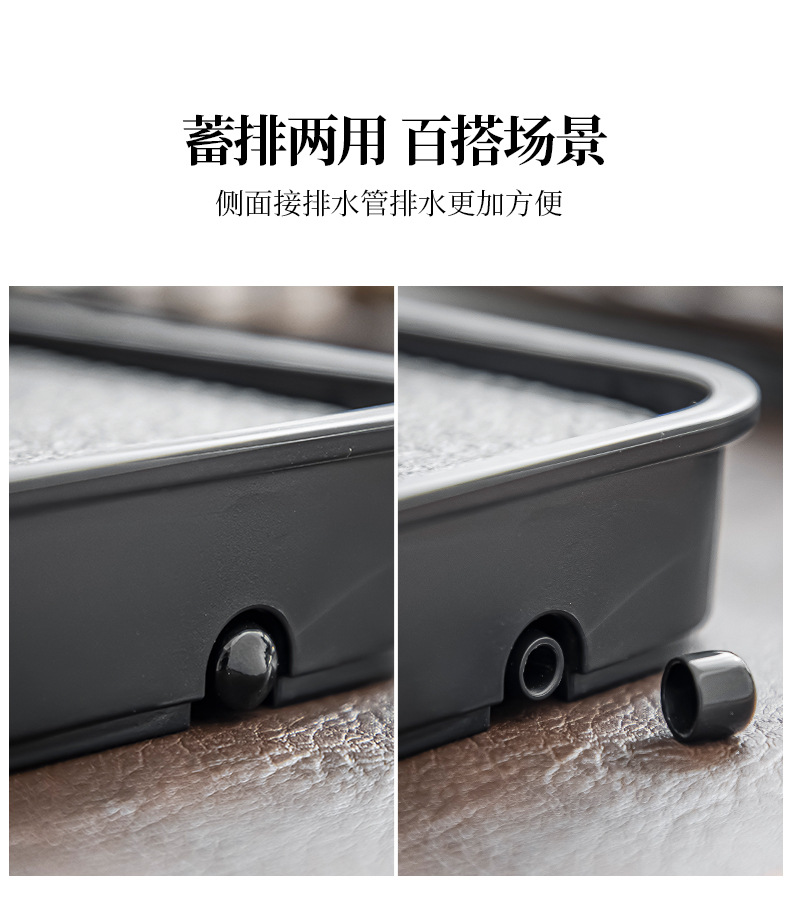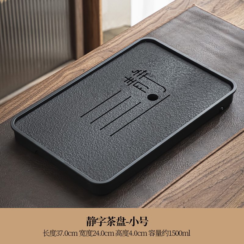 • (작은) 정적 블랙 직사각형 모방 우진 티 트레이 37*24*4 [물 공급 드레인 볼]]