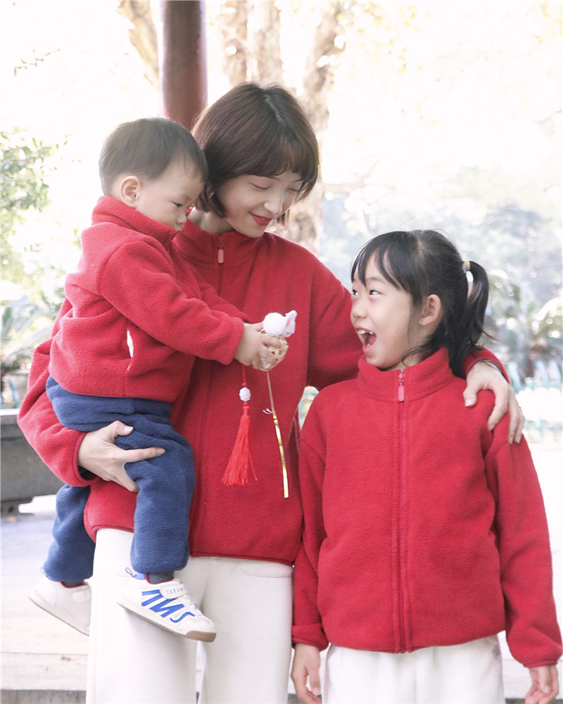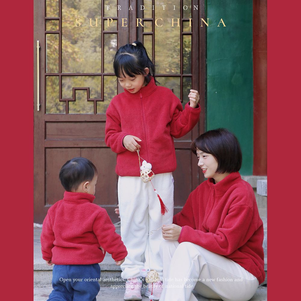[새해 레드] 슈퍼 부드럽고 찹쌀! 가족 부모-자식 착용 어린이 스탠드 칼라 코트 남성과 여성의 따뜻한 기모 wy2301