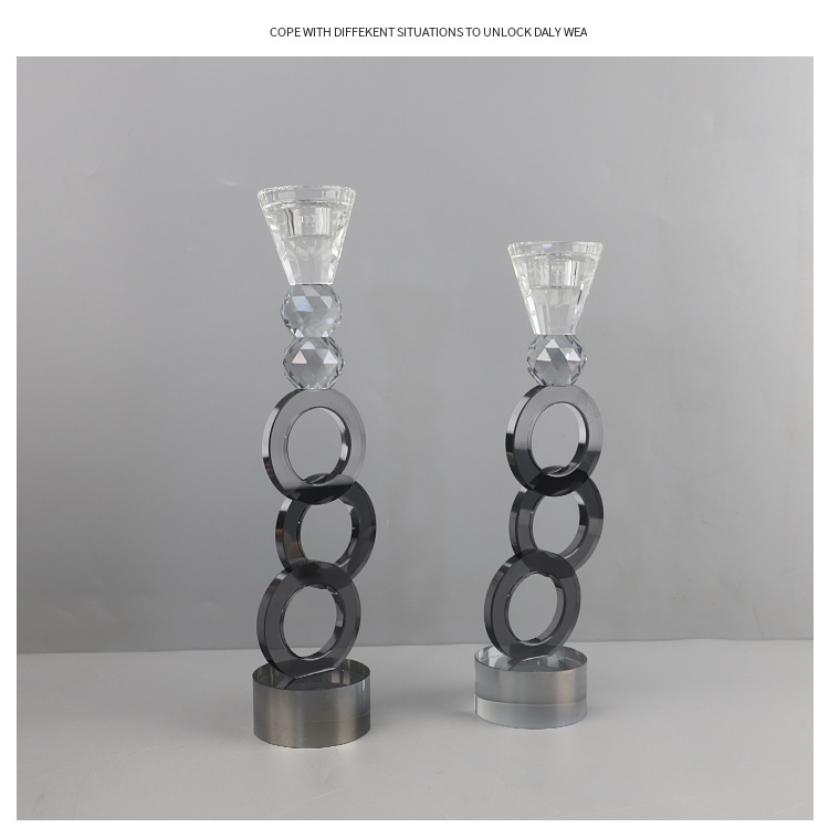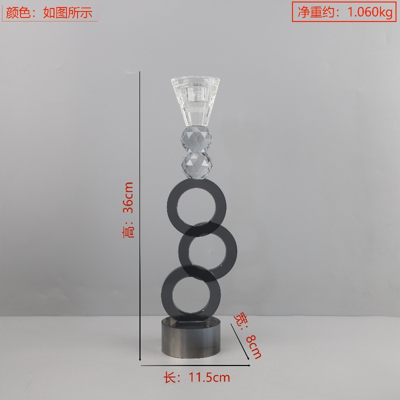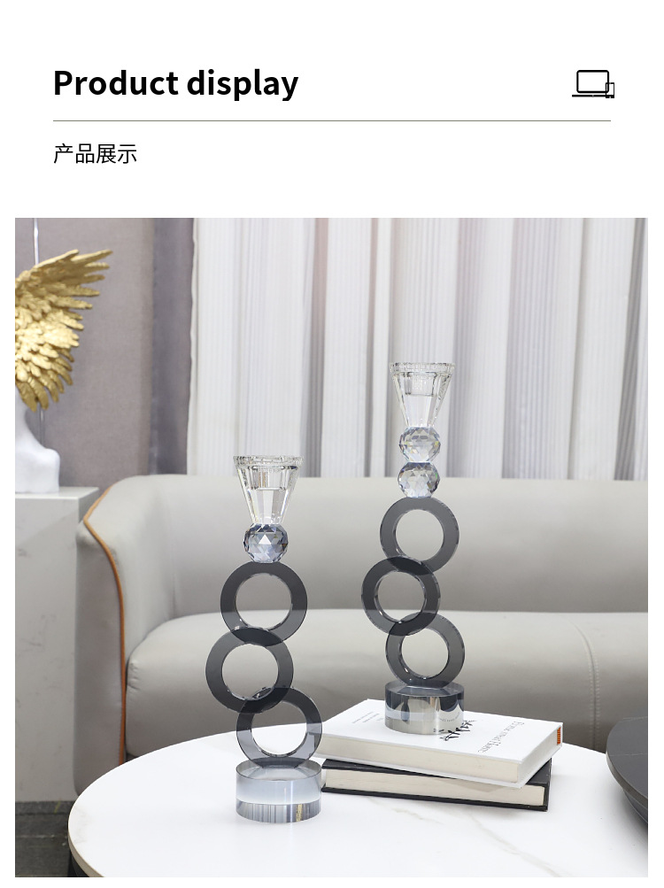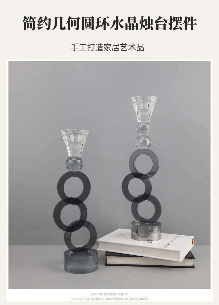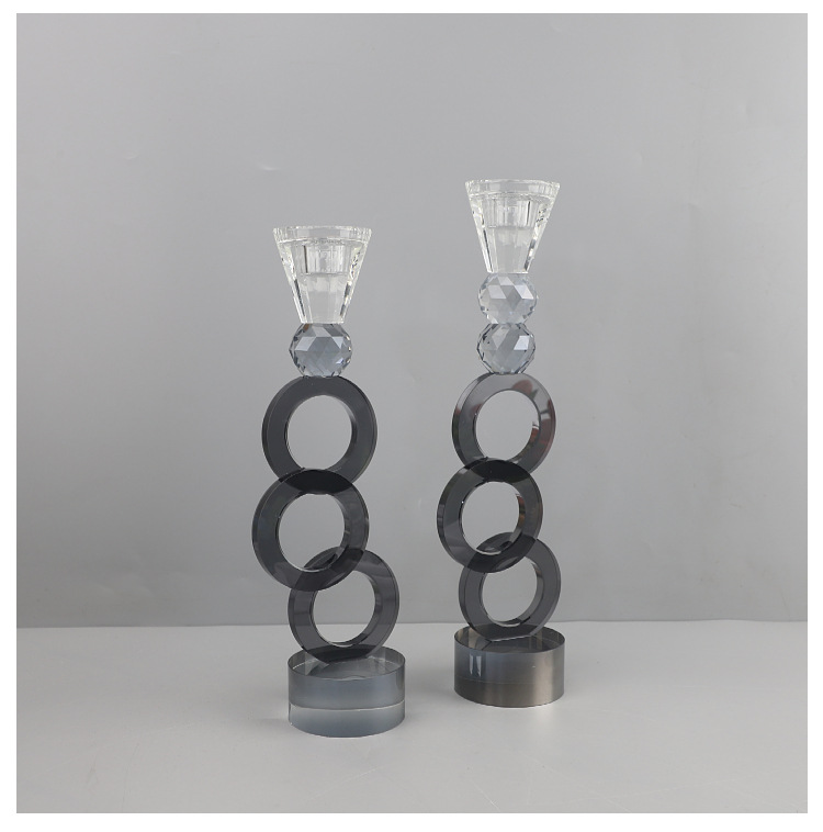현대적인 미니멀리스트 기하학적 스모키 그레이 링 크리스탈 촛대 장식 거실 식당 호텔 모델 룸 홈 장식