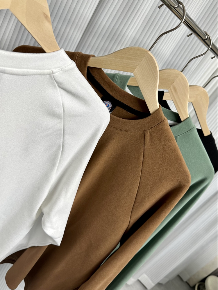 양면 벨벳! 높은 탄력 피부 친화적 인! 가을과 겨울 남성 대외 무역 단색 따뜻한 둥근 목 풀오버 긴 소매 티셔츠베이스