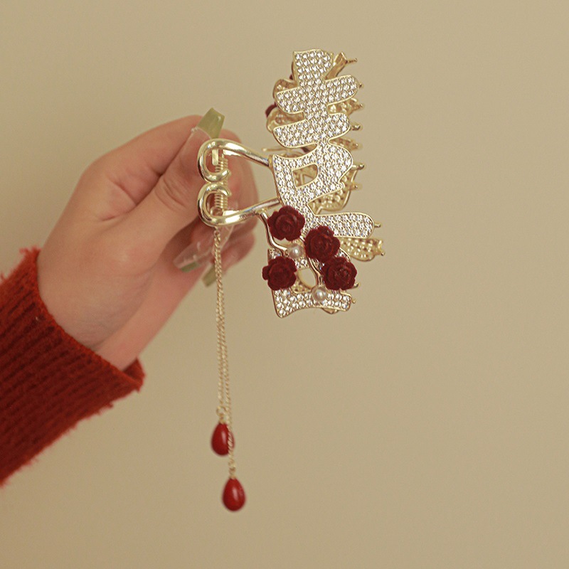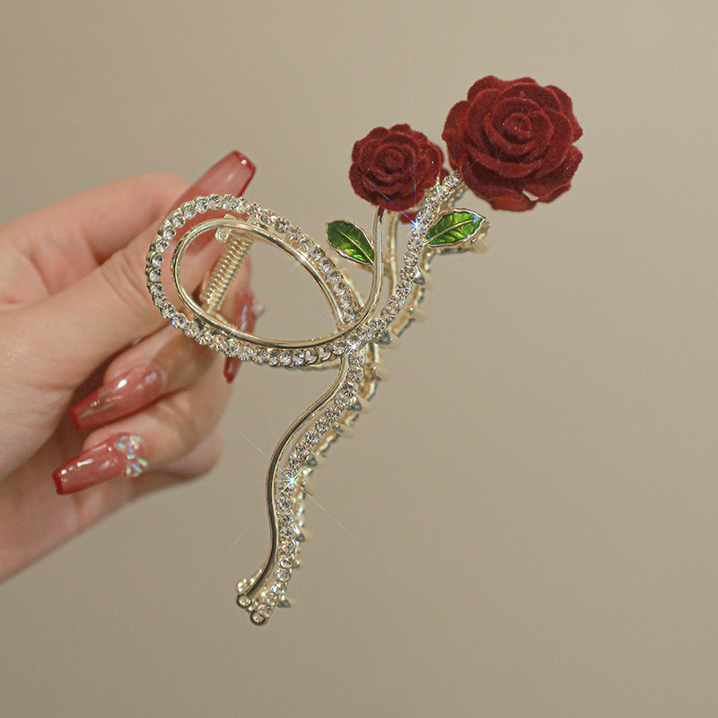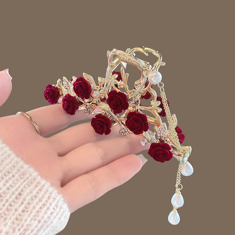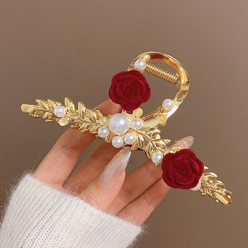 로즈 그랩 클립 벨벳 우아한 머리 머리 머리 소녀 상어 클립 금속 클립 프리미엄 감각 대형 헤어 액세서리