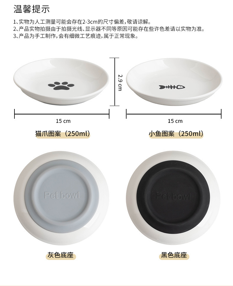 아마존 애완 동물 고양이 그릇 용품 간식 통조림 접시는 실리콘 바닥 고양이 그릇 세라믹 고양이 접시를 노크하기 쉽지 않습니다