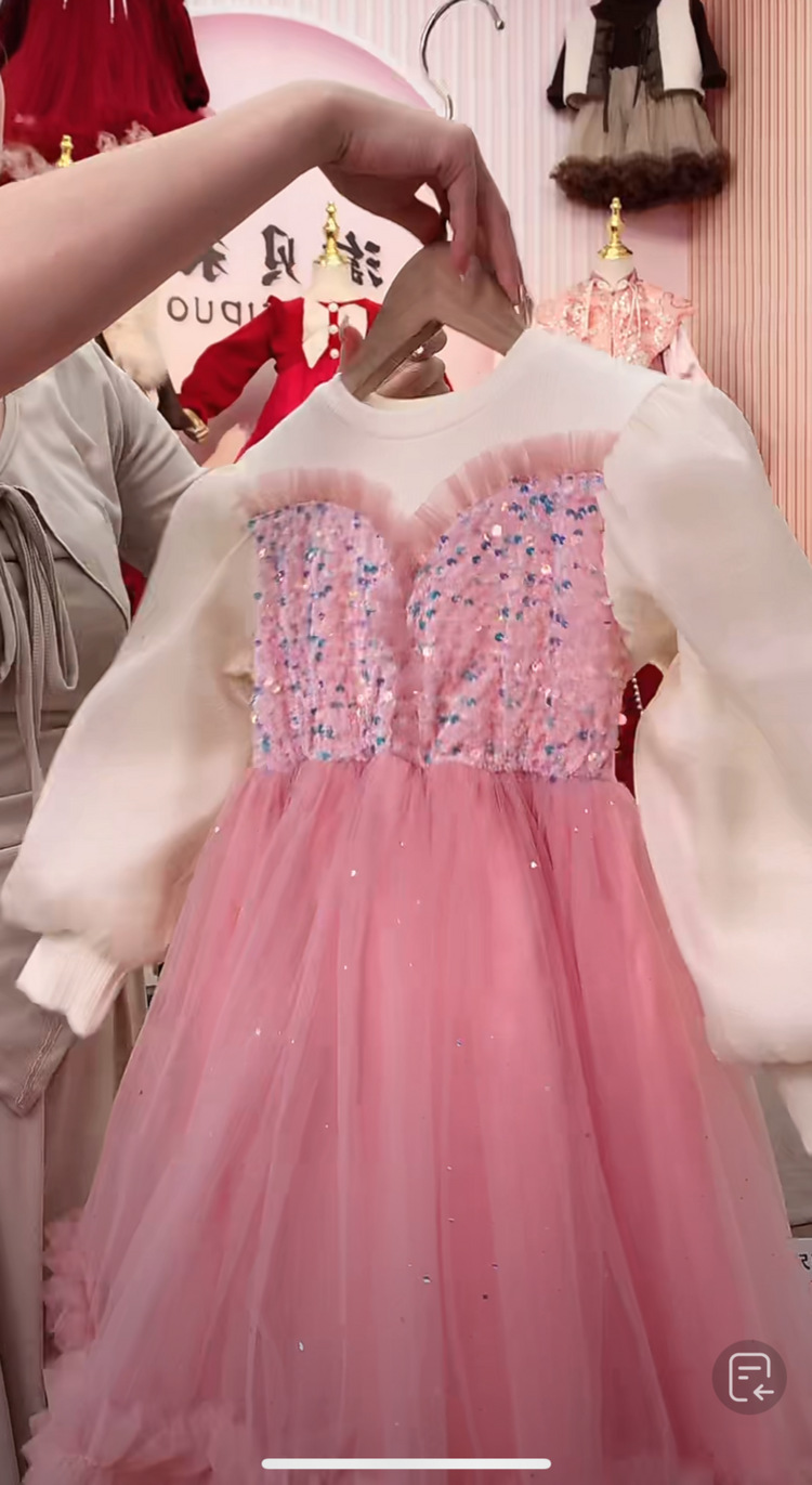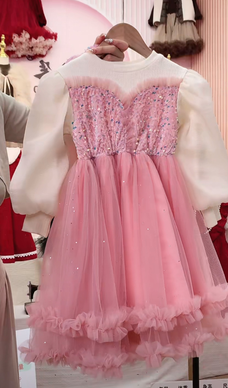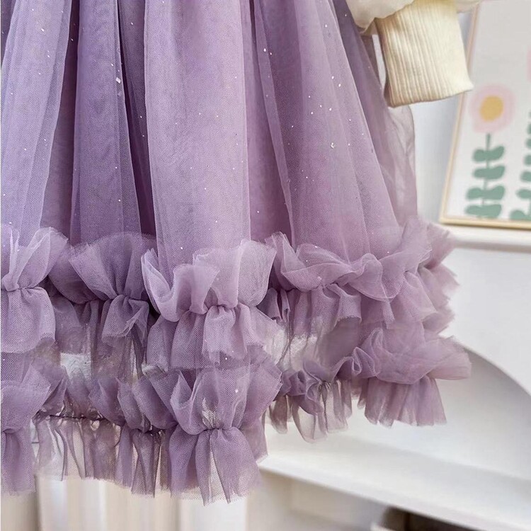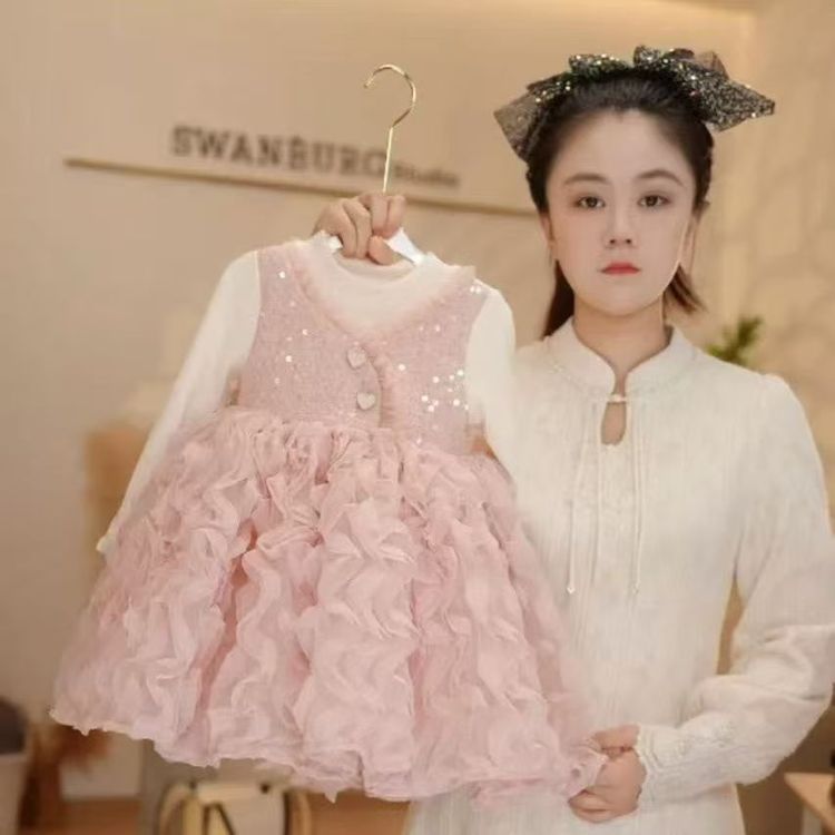 소녀 원피스 가을과 겨울 2024 새로운 아기 솜털 메쉬 원피스 크리스마스 원피스 기모 가짜 투피스 공주 원피스스토어 가기