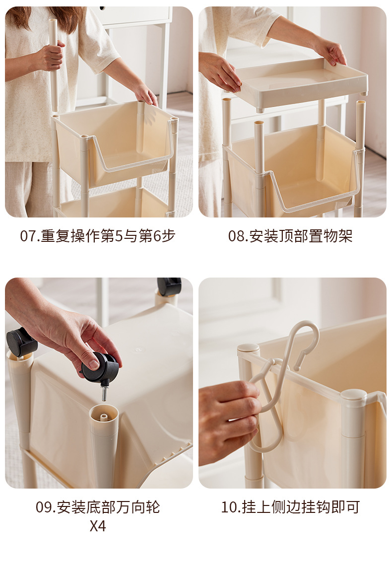 • 바퀴가 달린 3 층 [2 저장 상자 + 커버 + 후크 3]]