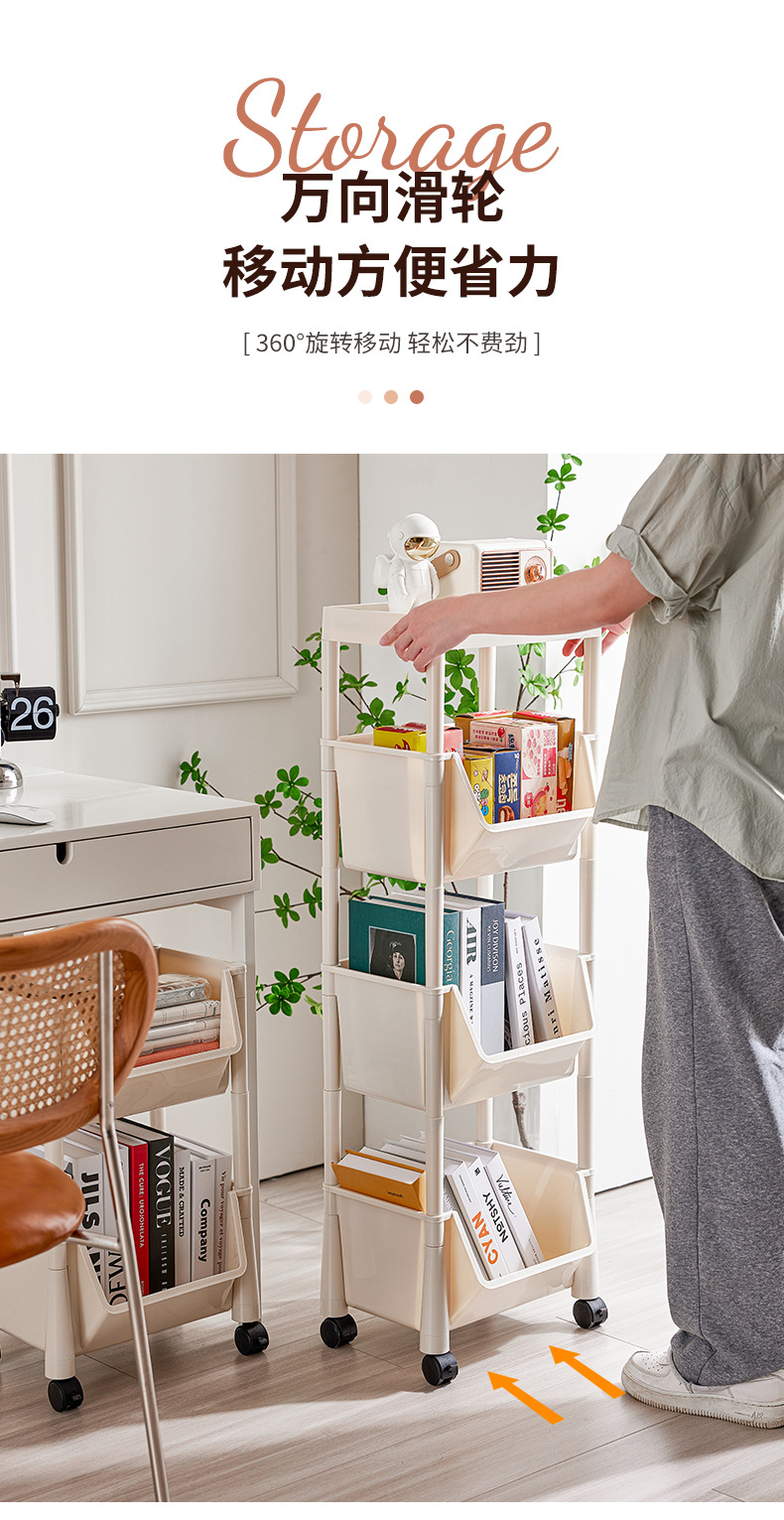 이동식 책장, 바닥형 수납선반, 가정용 어린이 카트형 책장, 주방 수납용품