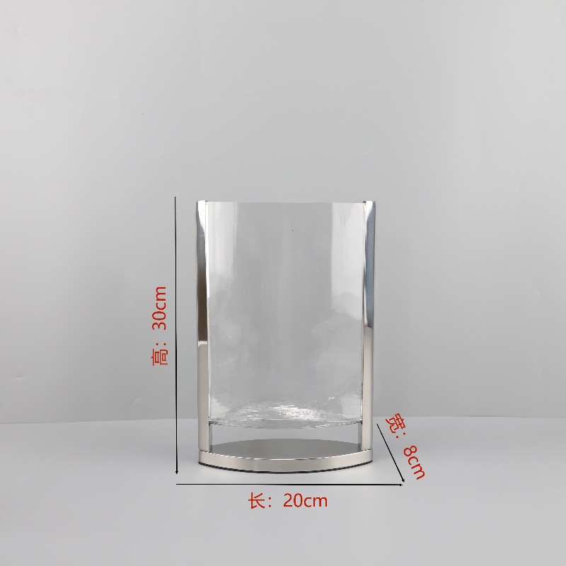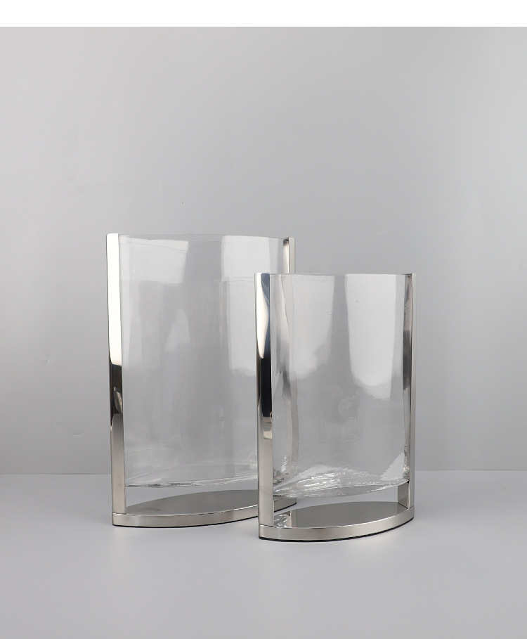 현대 간단한 기하학적 금속 가장자리 투명 평면 유리 수경 꽃 배열 꽃병 장식 부드러운 장식 홈 액세서리