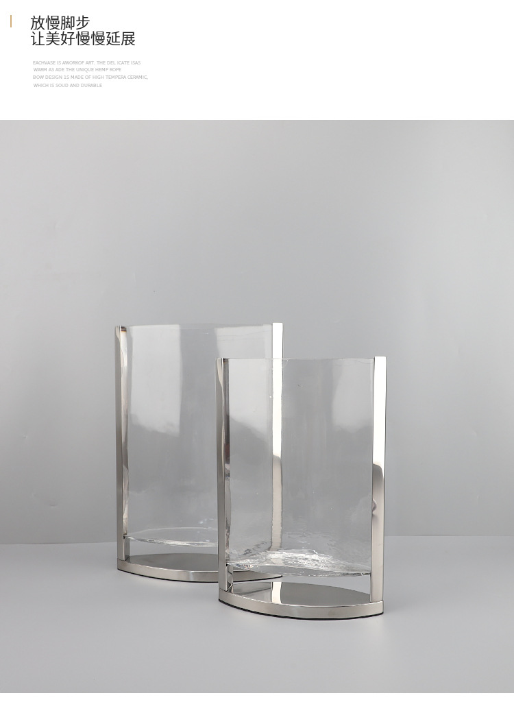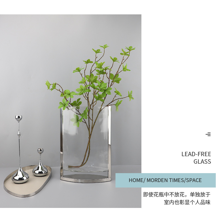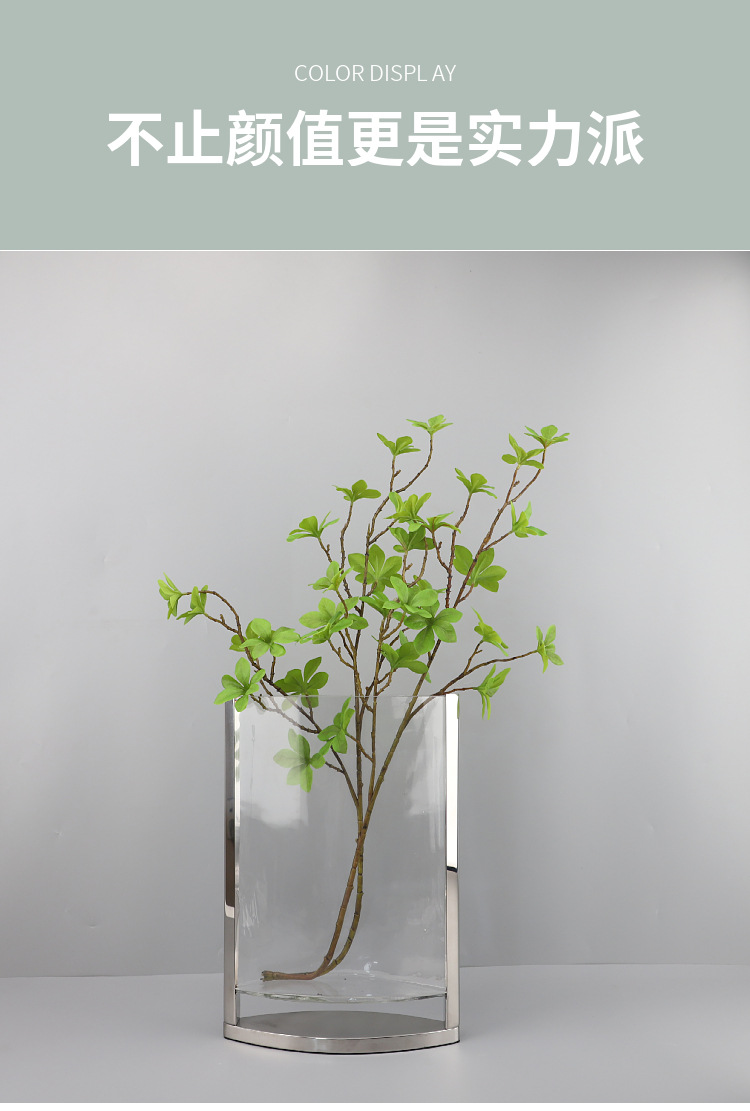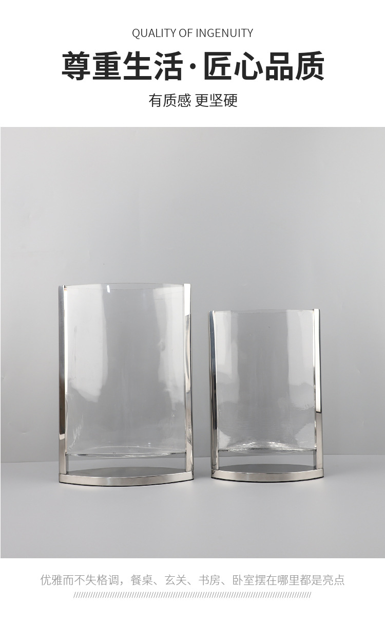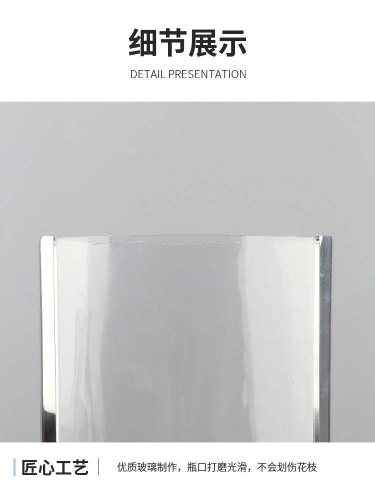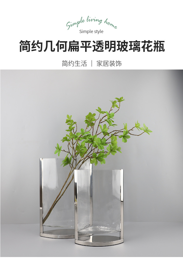 현대 간단한 기하학적 금속 가장자리 투명 평면 유리 수경 꽃 배열 꽃병 장식 부드러운 장식 홈 액세서리스토어 가기