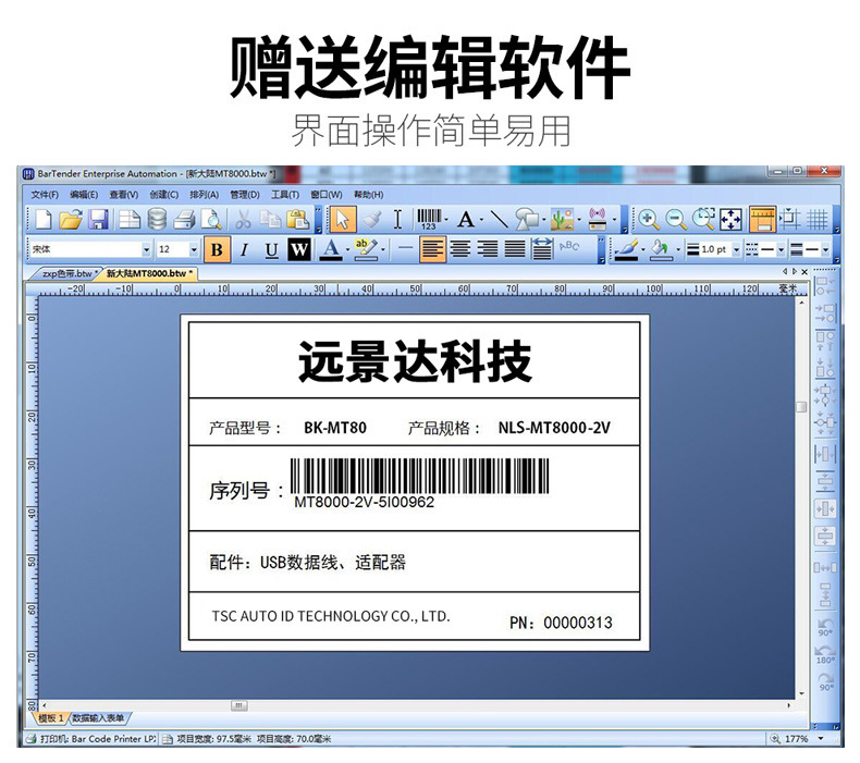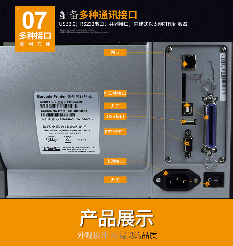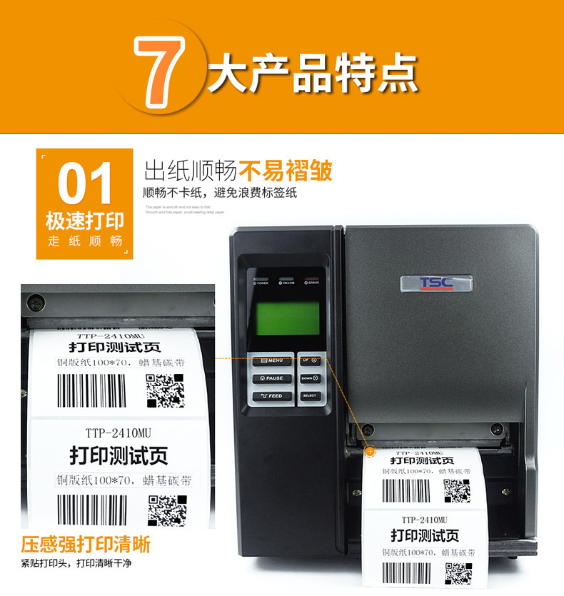 TSC TTP-2410MU 산업 라벨 프린터 600DPI HD 코팅 종이 실버 접착 스티커 프린터스토어 가기