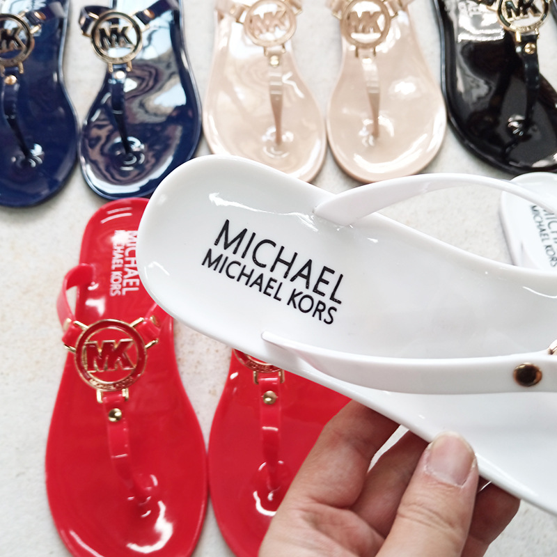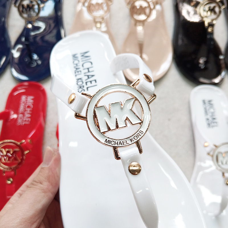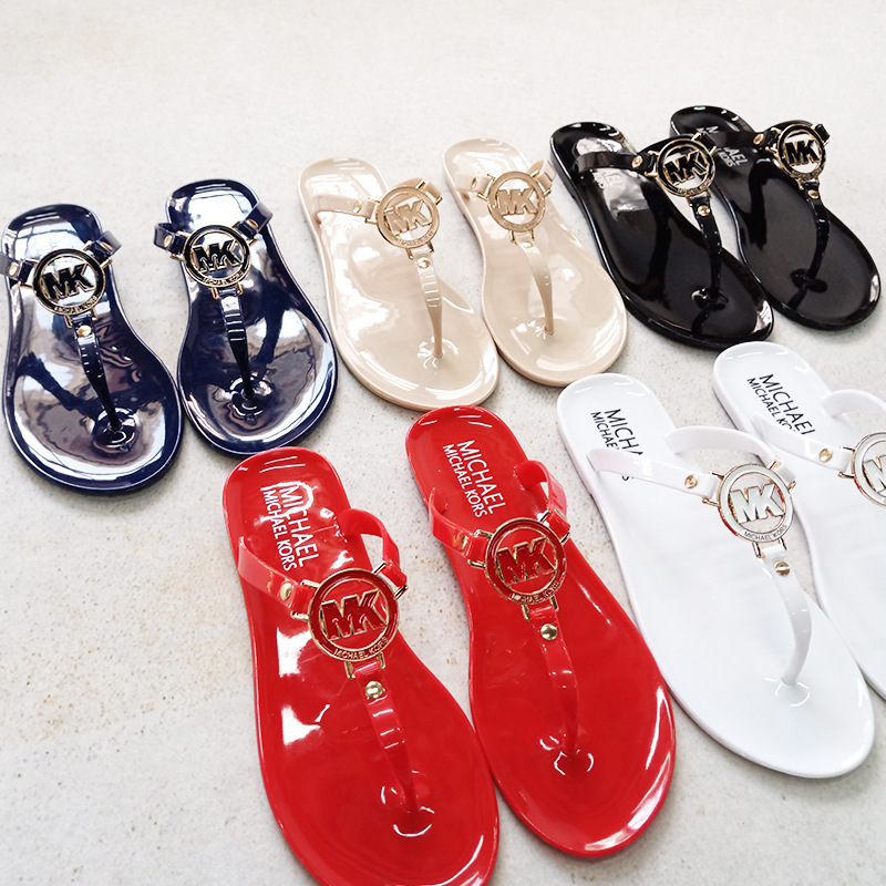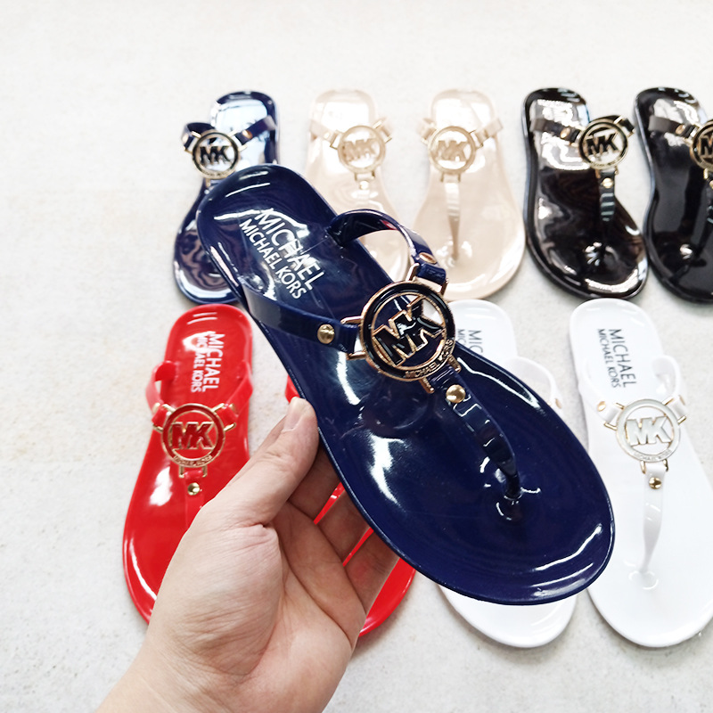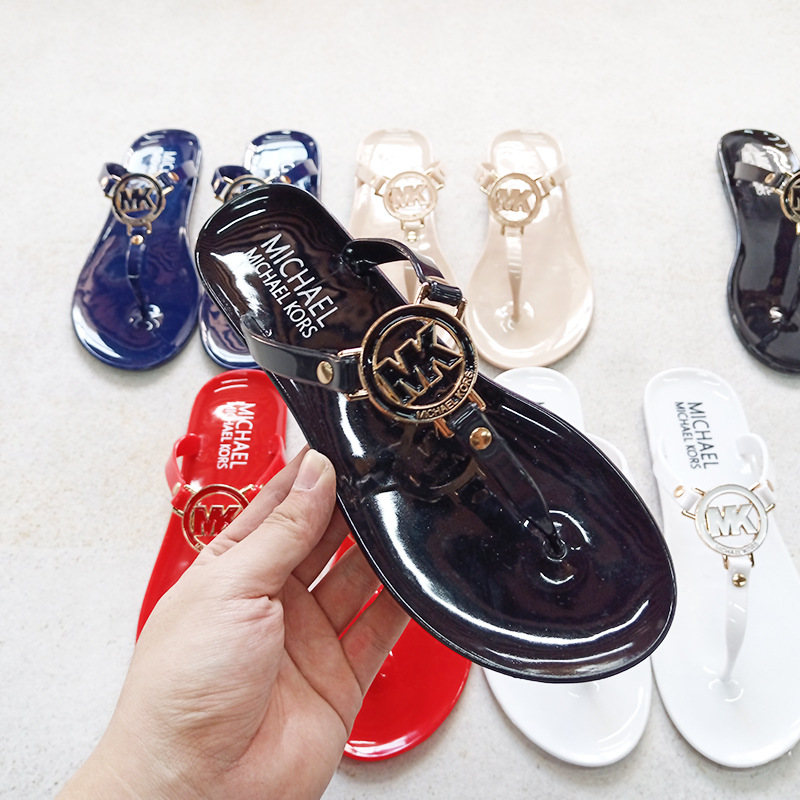 MK 플랫 슬리퍼 여성의 새로운 캔디 컬러 플립 플롭 슬리퍼 경량 착용 방지 크리스탈 젤리 비치 슬리퍼스토어 가기