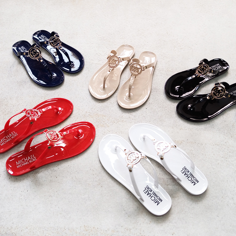 MK 플랫 슬리퍼 여성의 새로운 캔디 컬러 플립 플롭 슬리퍼 경량 착용 방지 크리스탈 젤리 비치 슬리퍼