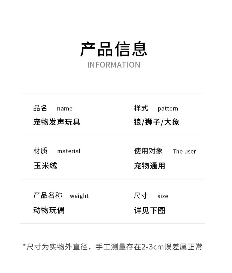 재고 도매 개 봉제 소리 애완 동물 장난감 사자 코끼리 늑대 대화 형 훈련 장난감 물린 방지 개 장난감스토어 가기