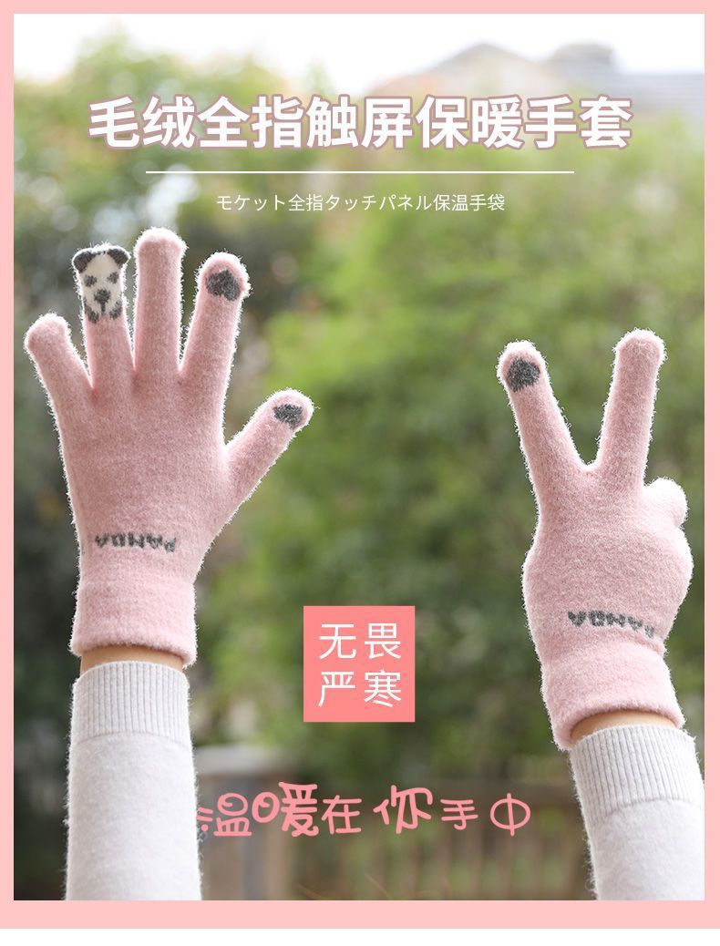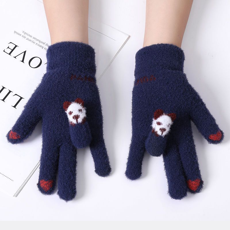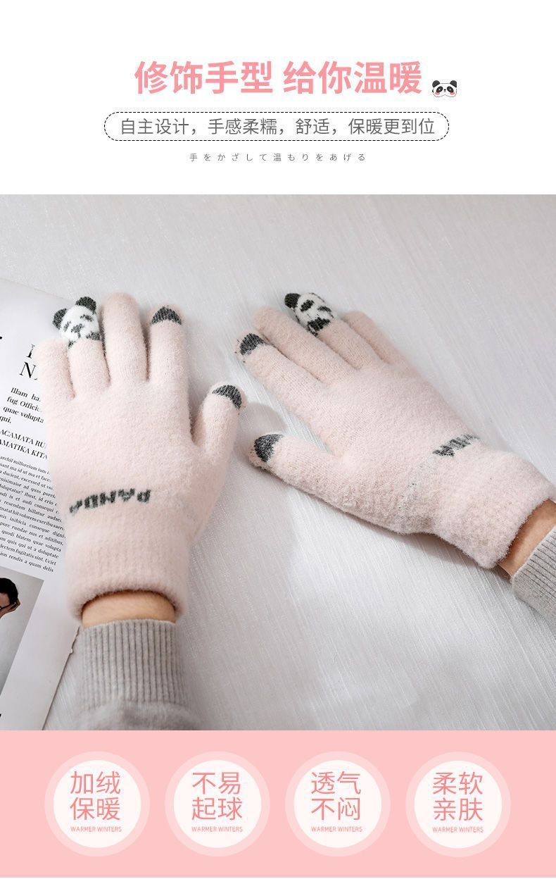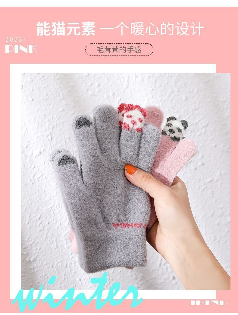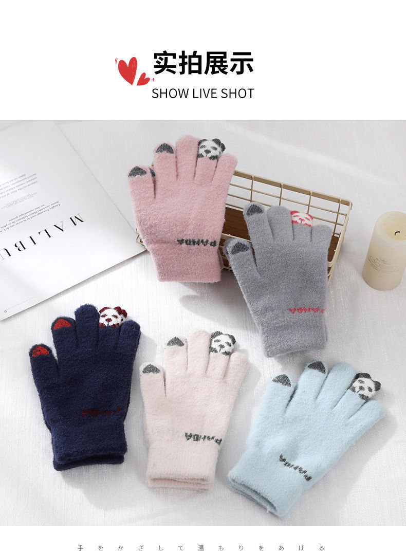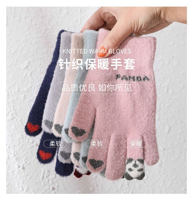여성 장갑 겨울 새로운 열린 손가락 두껍게 따뜻한 큰 아이들 귀여운 학생 방한 울 터치 스크린 겨울 남자
