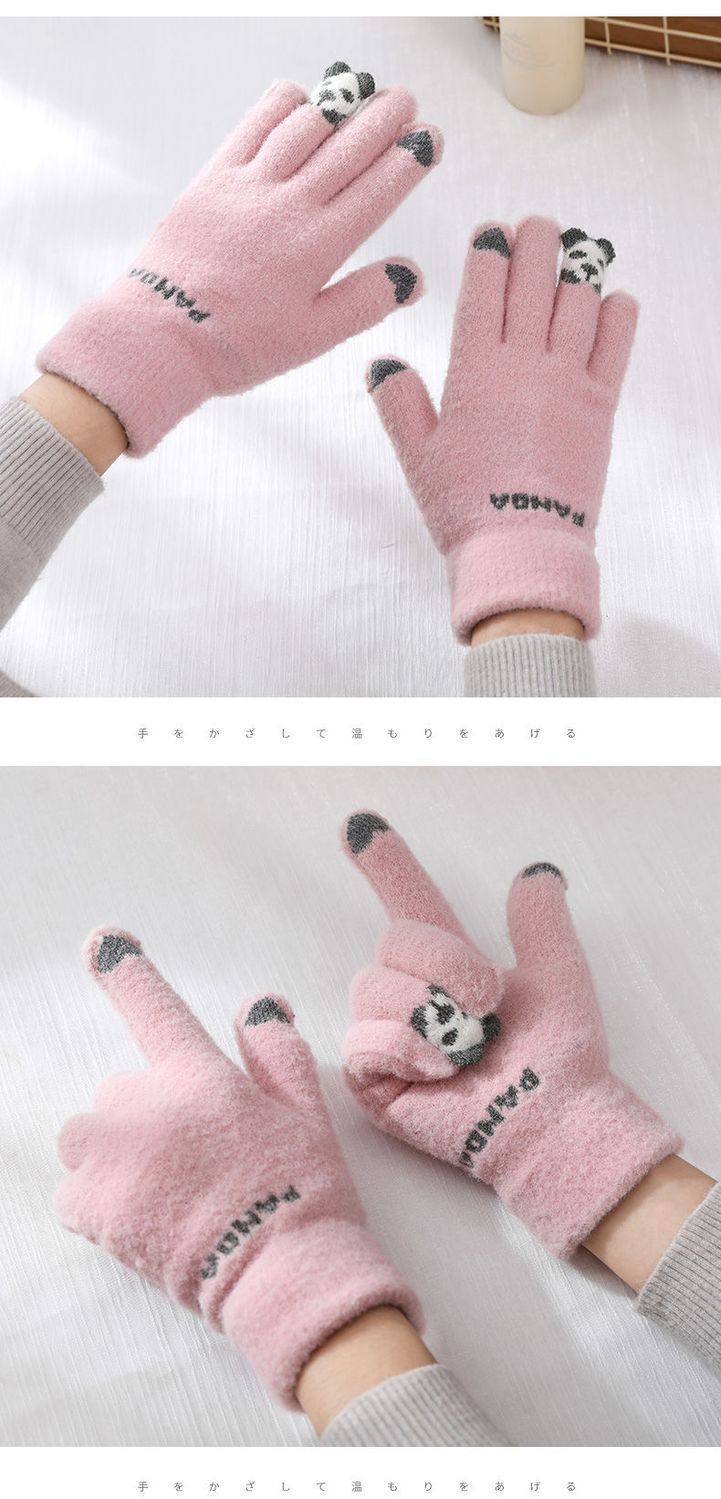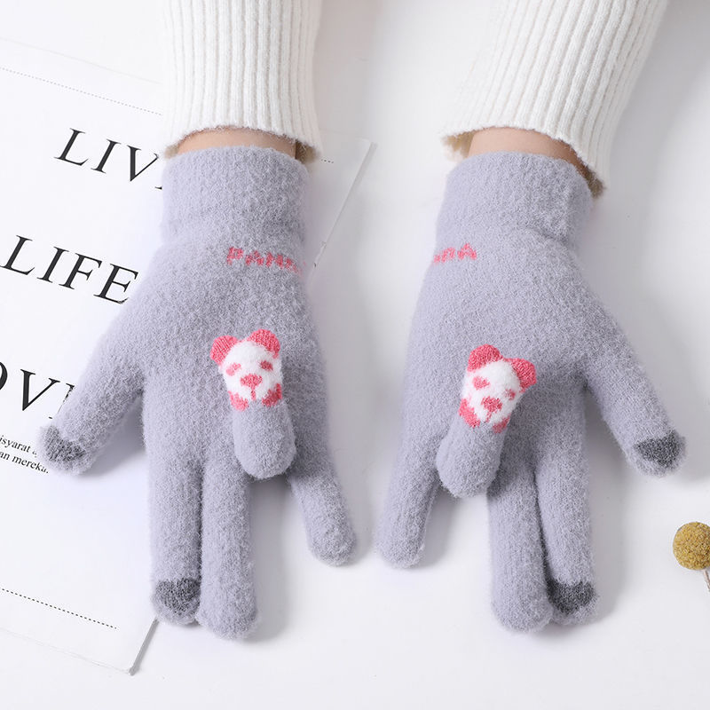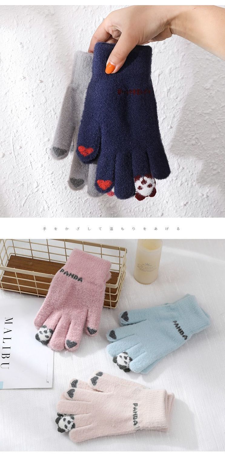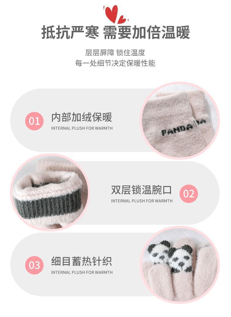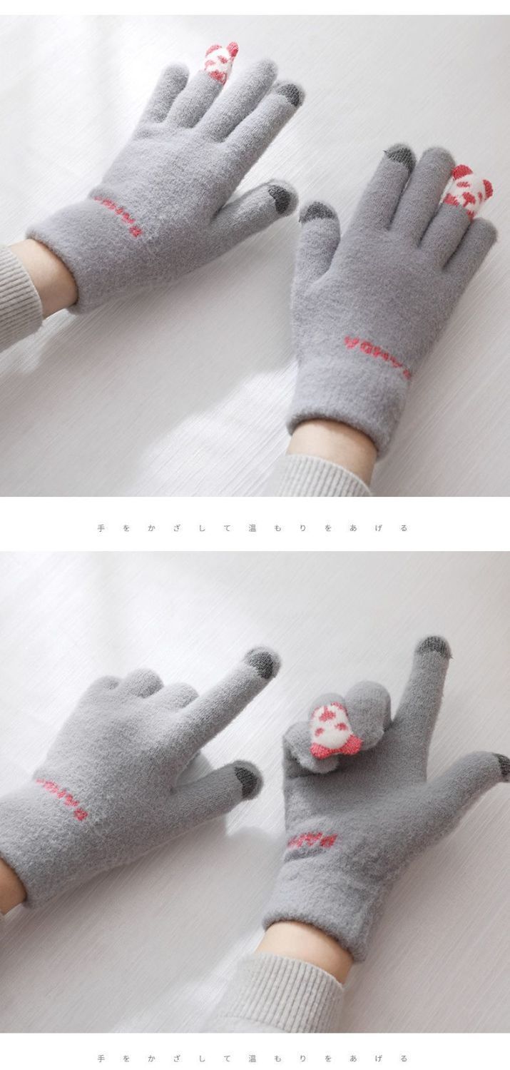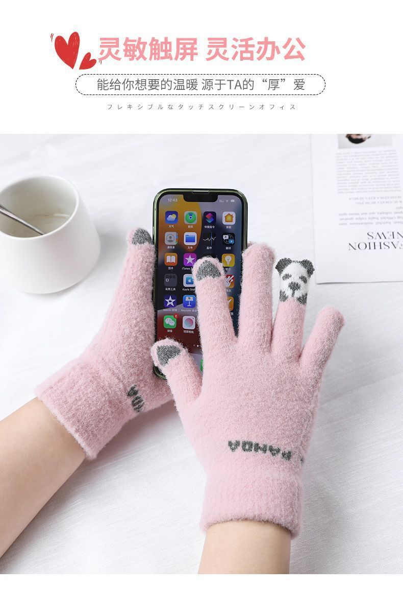 여성 장갑 겨울 새로운 열린 손가락 두껍게 따뜻한 큰 아이들 귀여운 학생 방한 울 터치 스크린 겨울 남자