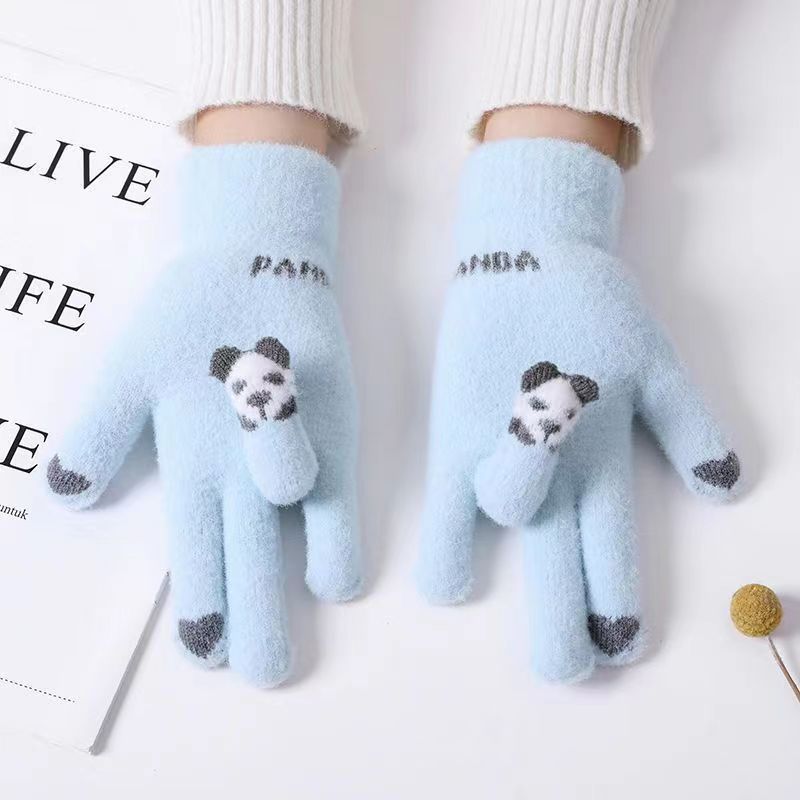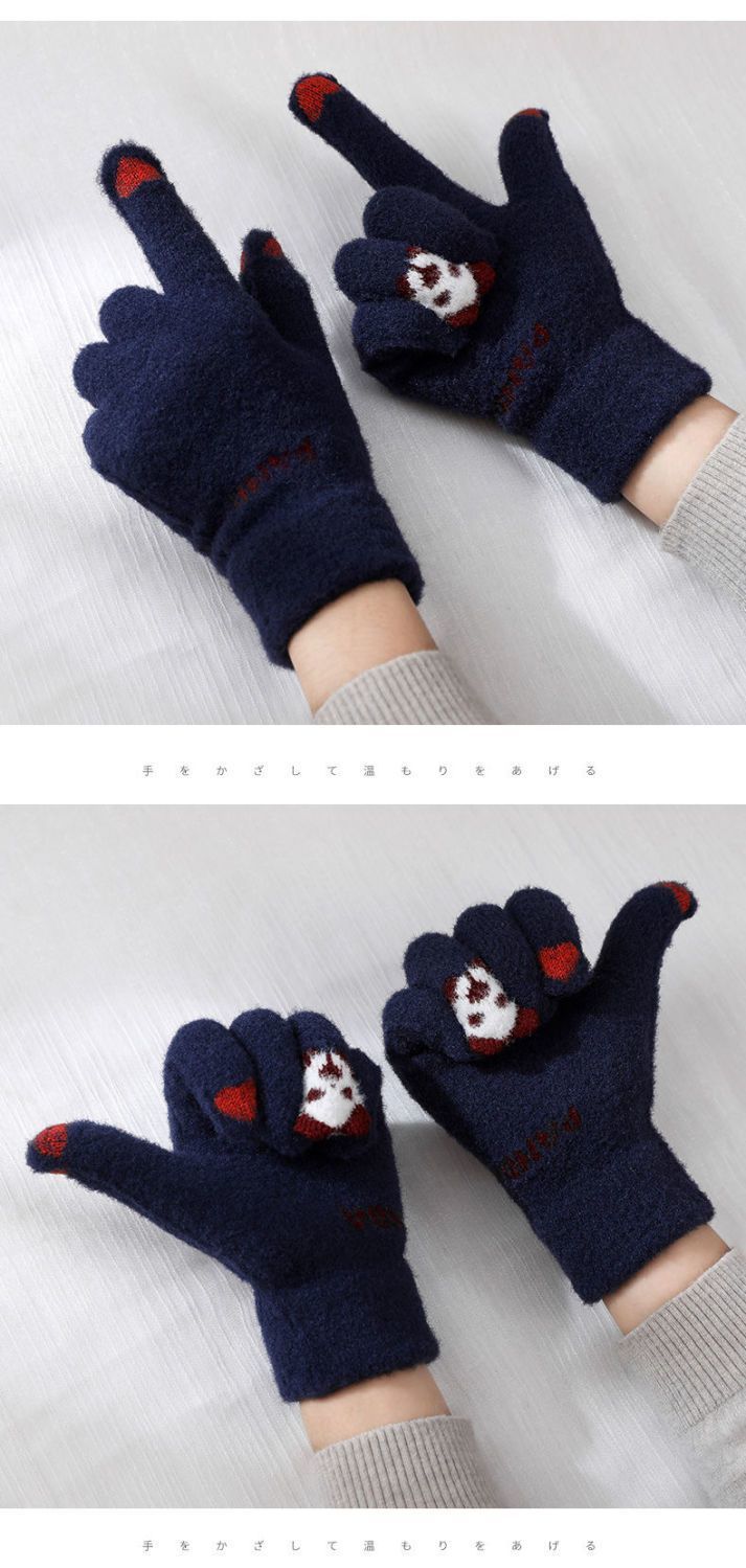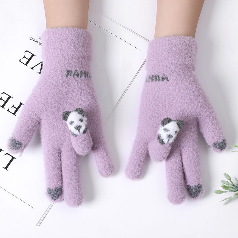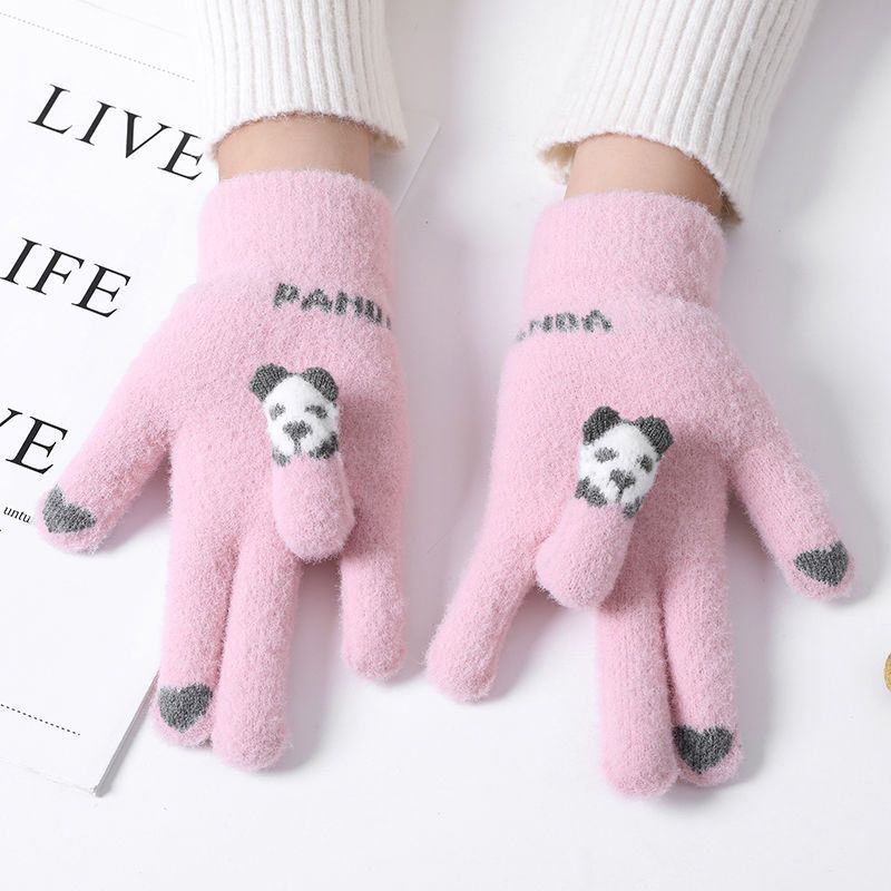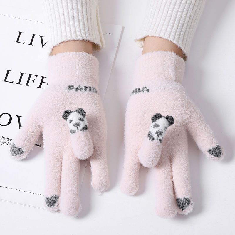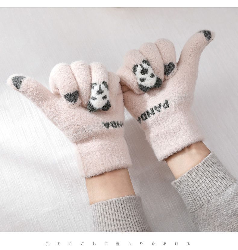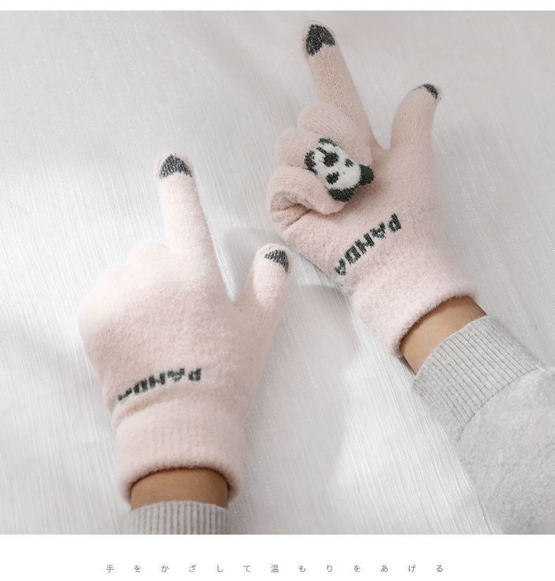 여성 장갑 겨울 새로운 열린 손가락 두껍게 따뜻한 큰 아이들 귀여운 학생 방한 울 터치 스크린 겨울 남자