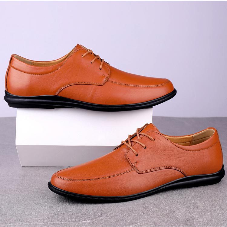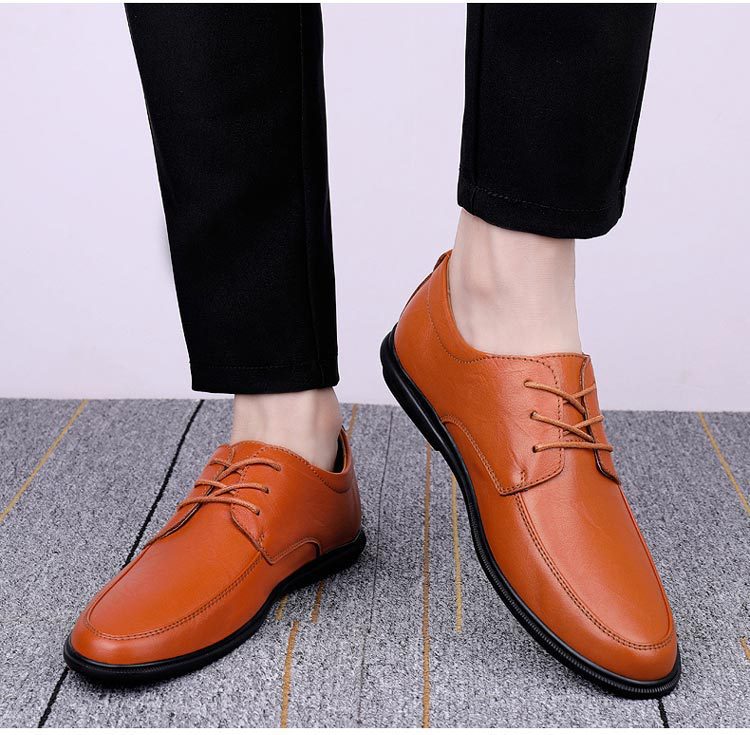 2025 새로운 가을 통기성 남성 신발 비즈니스 캐주얼 가죽 신발 게으른 신발 맞춤형 다목적 한국어 버전 부드러운 밑창 가죽 신발 대외 무역스토어 가기