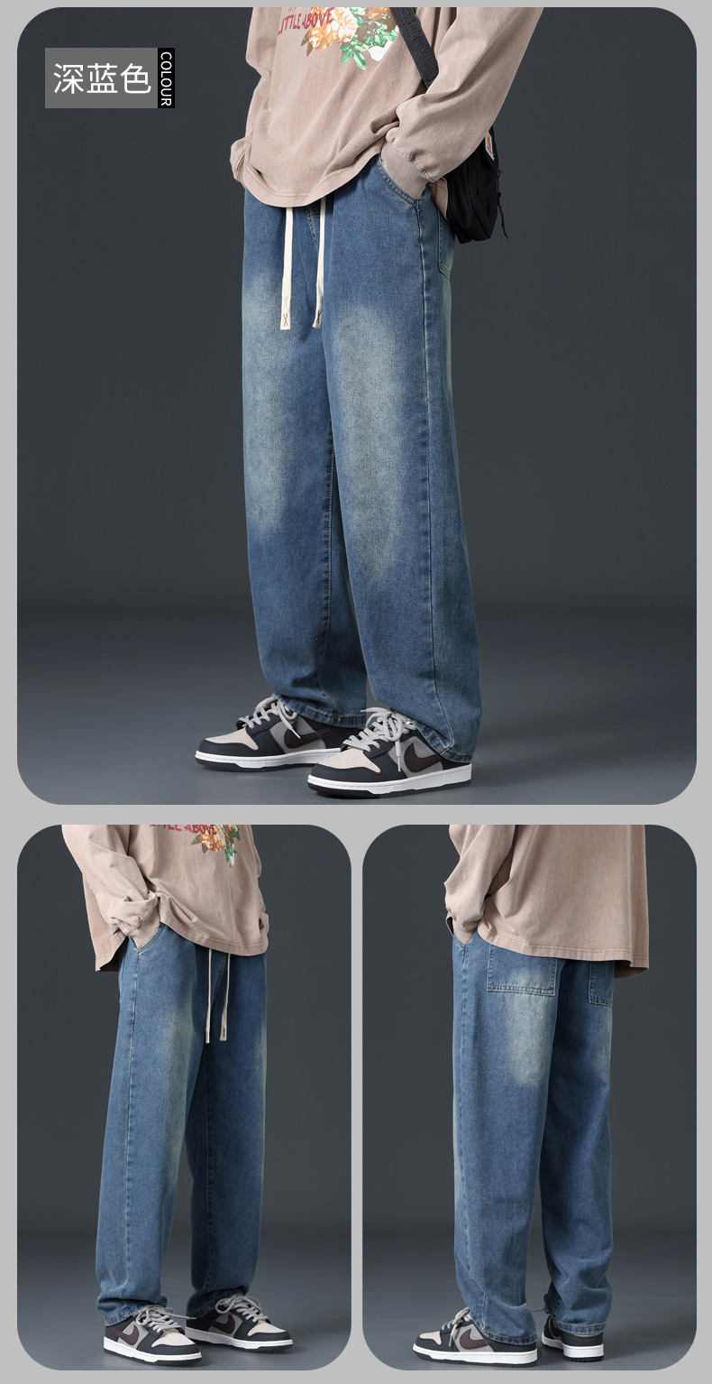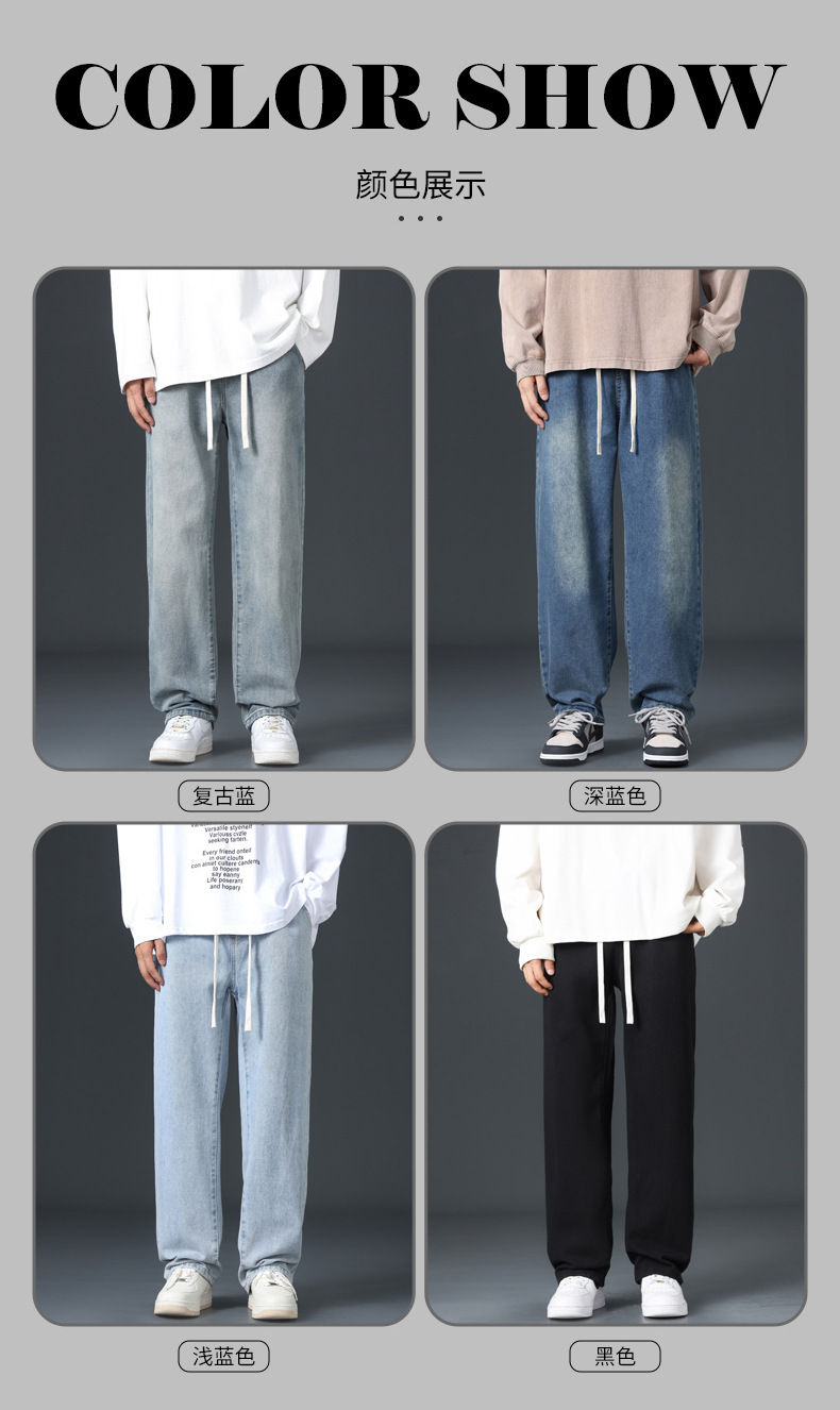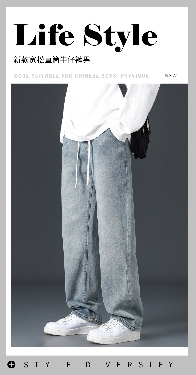 Xintang 와이드 레그 청바지 남성용 세탁 탄성 허리 바지 남성 패션 브랜드 편안한 캐주얼 스트레이트 팬츠스토어 가기
