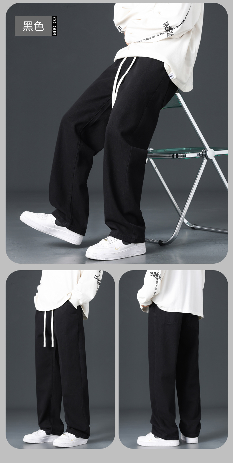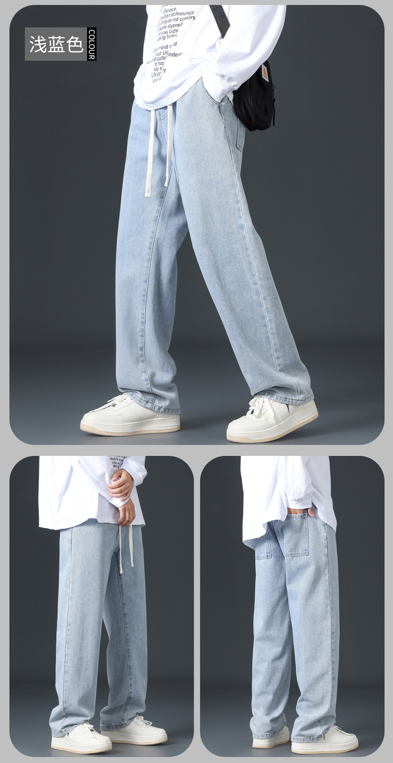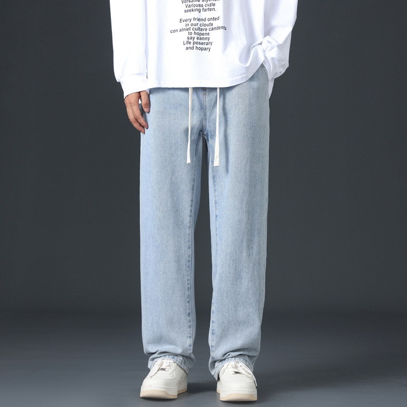 Xintang 와이드 레그 청바지 남성용 세탁 탄성 허리 바지 남성 패션 브랜드 편안한 캐주얼 스트레이트 팬츠스토어 가기