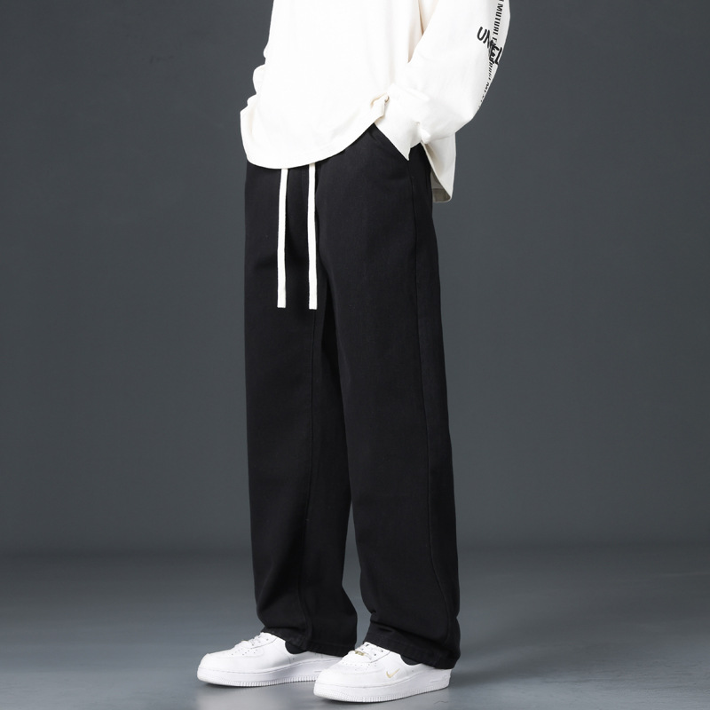 Xintang 와이드 레그 청바지 남성용 세탁 탄성 허리 바지 남성 패션 브랜드 편안한 캐주얼 스트레이트 팬츠