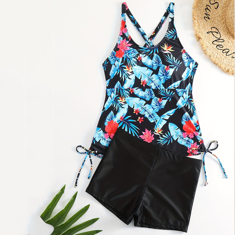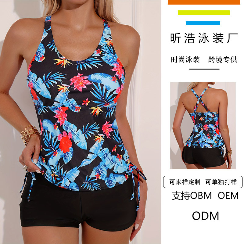 24 새로운 유럽과 미국의 국경 간 여성 수영복 조끼 식물 프린트 복서 스플릿 수영복 투피스 수영복스토어 가기