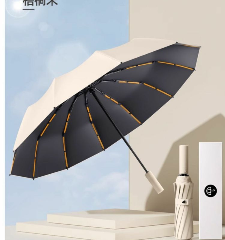 • [12 가닥 4 세그먼트 용골] 베이지 60K 강화 햇볕이 잘 드는 우산
