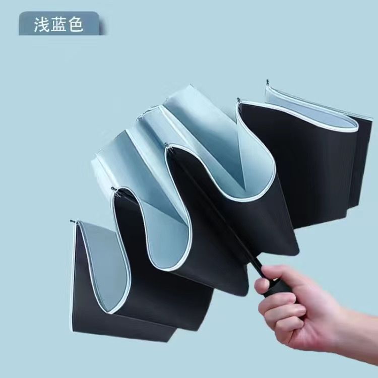 • [자동] 8 뼈 검은 플라스틱 우산 라이트 블루