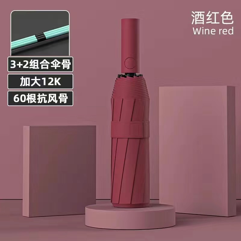 • [12 가닥 4 세그먼트 용골] 버건디 60K 강화 햇살 우산