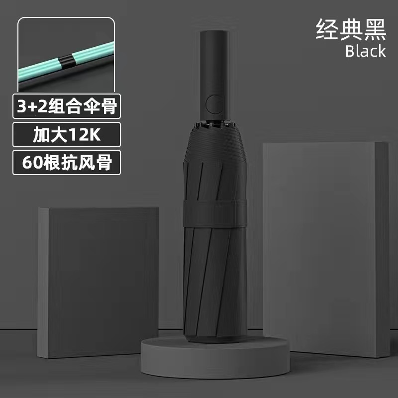 • [12 가닥 4 세그먼트 용골] 블랙 60K 강화 햇살 우산